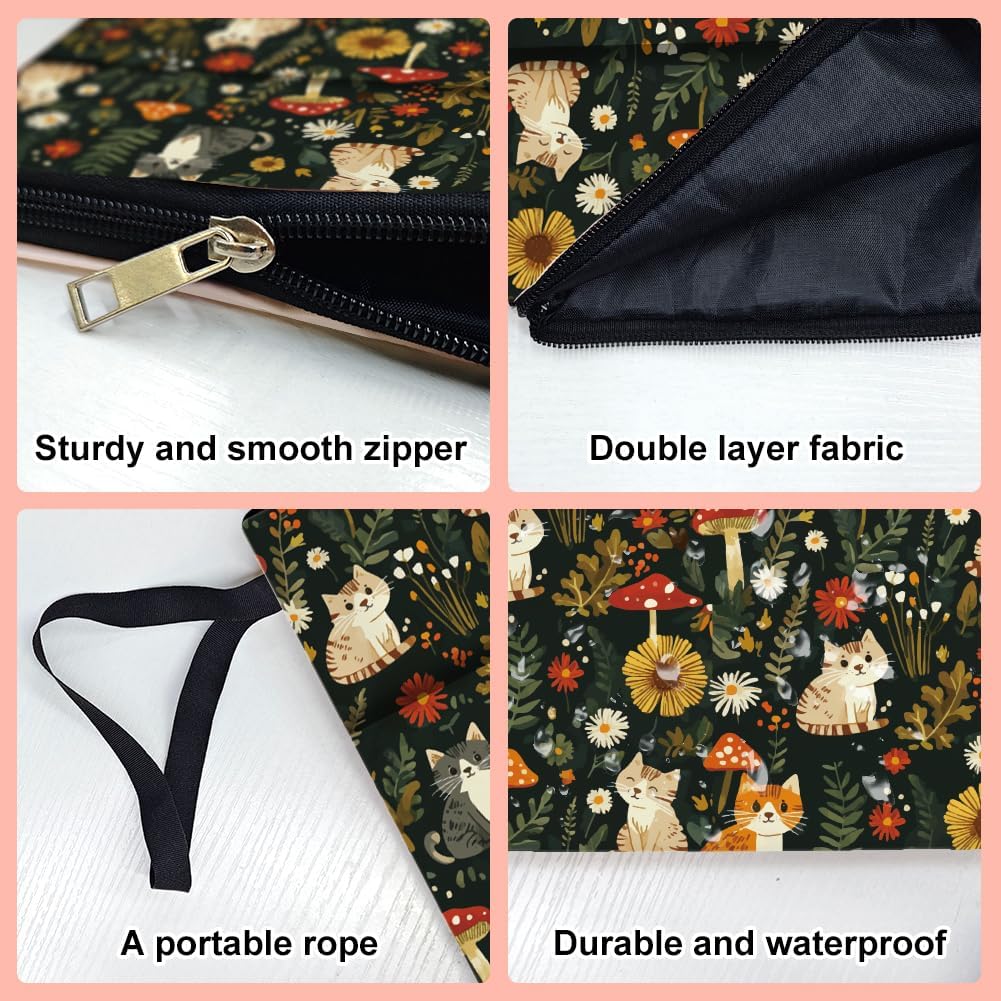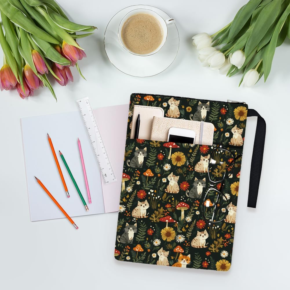 1pc Floral Cat Book Covers 13.4×9.45 inches Polyester Book Sleeve Book Protectors with Zipper and Front Pocket for Students Teachers and Book Lovers