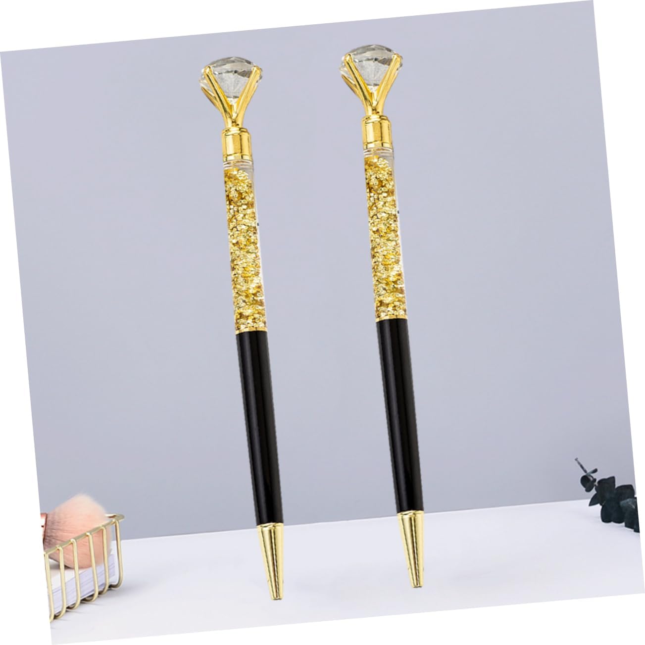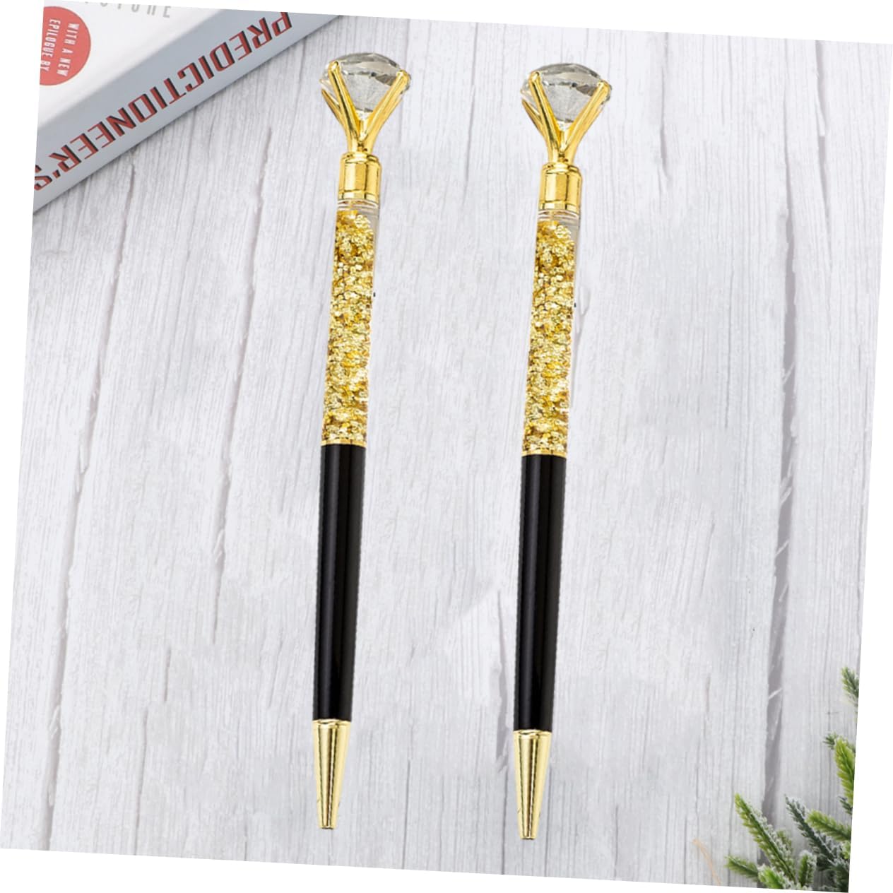 2Pcs Luxury Ballpoint Pen Sparkling Diamond Roller Ball Pens for School Office Black Metal Body Stylish Present for Anniversaries Festivals