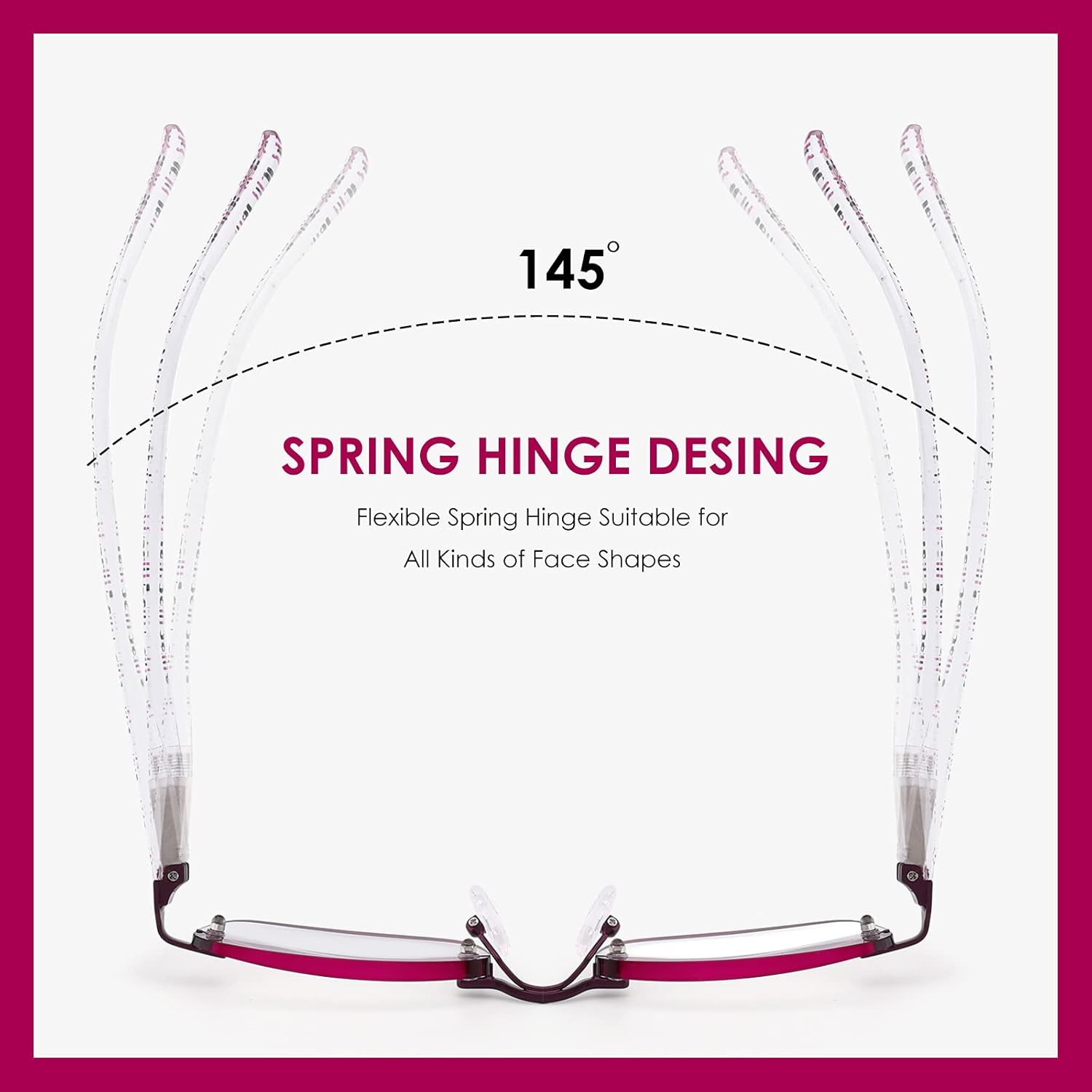 【Spring Hinge Reading Glasses】The women readers adopt flexible spring hinge which can be extended easily, suitable for women with various kinds of faces. The silicone nose pads make it comfortable to wear. The high quality stainless steel metal front frame is durable enough for a long time to use