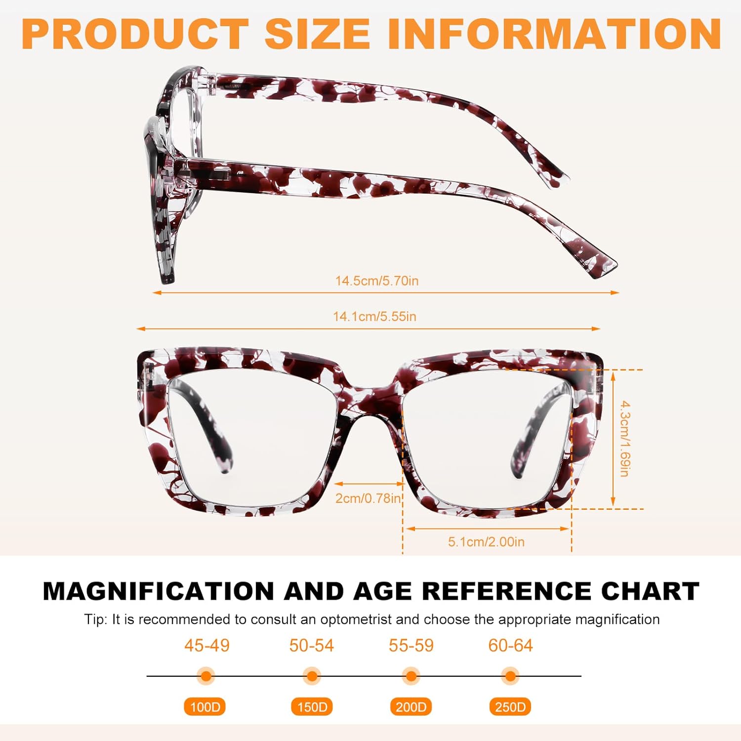 – Temple Length: 145mm / 5.71 inches
