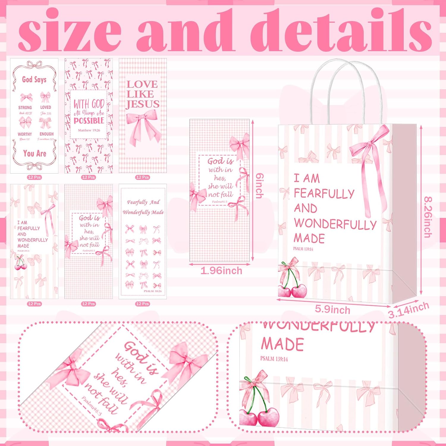 Pink Bow Coquette Design: you will find the beauty of pink bow coquette design combined with meaningful Bible verses; Each one is printed with inspirational words such as God Says You are, God Is Within Her, which convey positive faith and self affirmation messages to inspire female friends to discover their own value; Add a touch of elegance and spirituality to your daily life