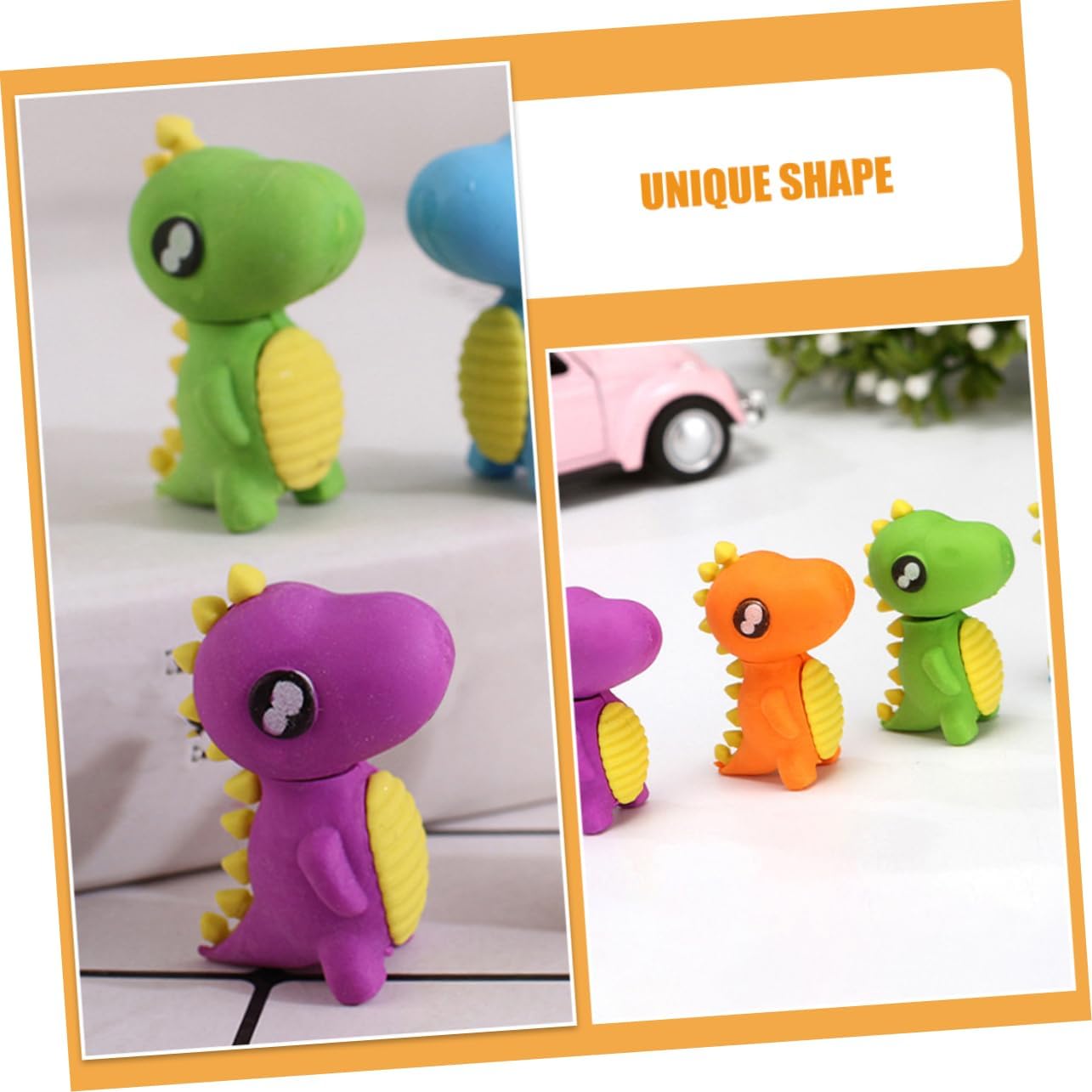 – The adorable and novelty dinosaur shaped design, coupled with bright colors, will definitely be liked by cute erasers.