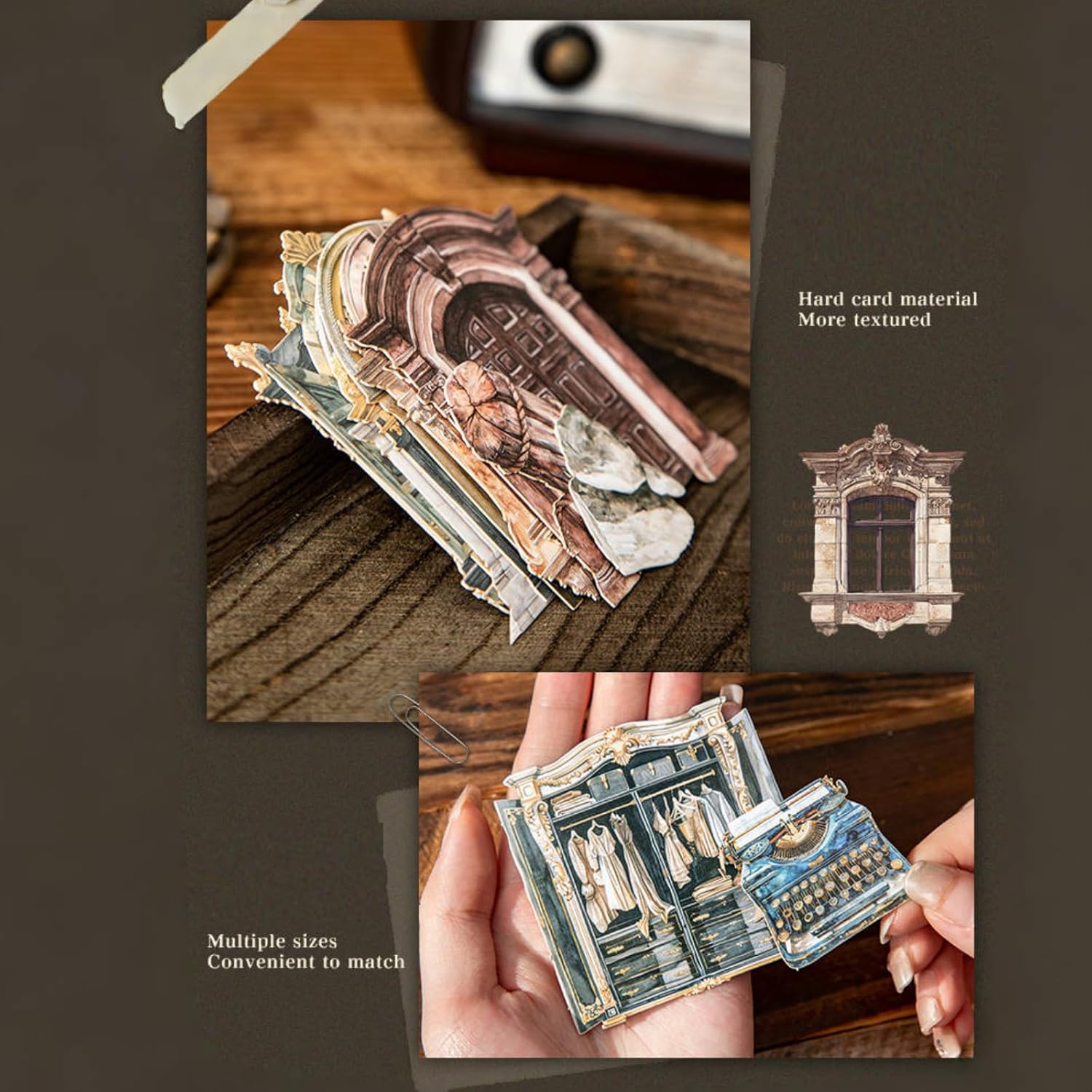 80 PCS Vintage Textured Cardstock Hollowed Door and Window Frame Stickers, Classical Manor Scrapbook Stickers for DIY Diary Junk Journal Handbook Journaling Scrapbooking Supplies Kit Pop-up