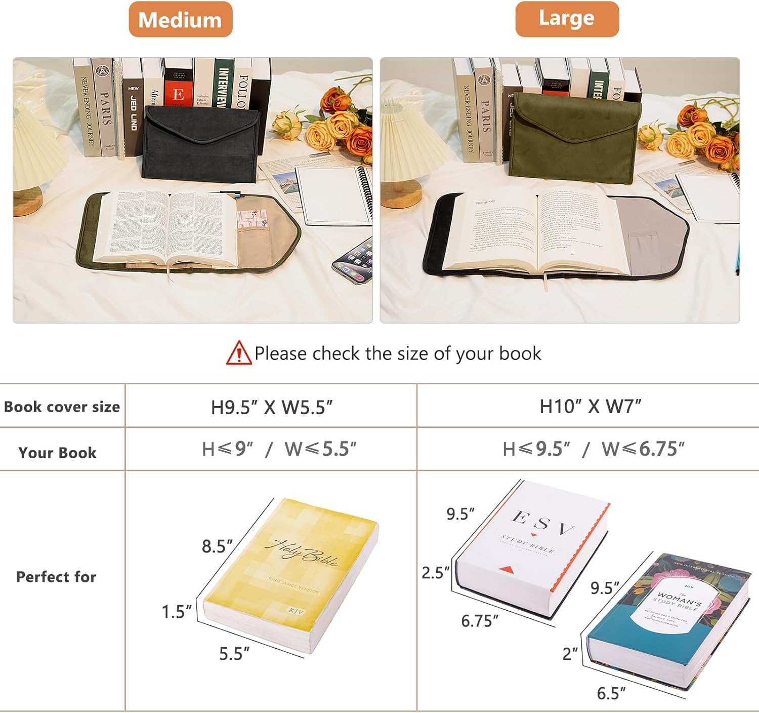 2 SIZES(MEDIUM / LARGE ) – Medium: W7XH10″ fit books in size of W5.5 XH8.5″ Large: W9″ X H11.5″, fit the hardcover Woman’s Study Bible W6.5 X D2.0 X H9.5″ or ESV study bible W6.75″ XD2.4 XH9.5″. Please measure your books before ordering.