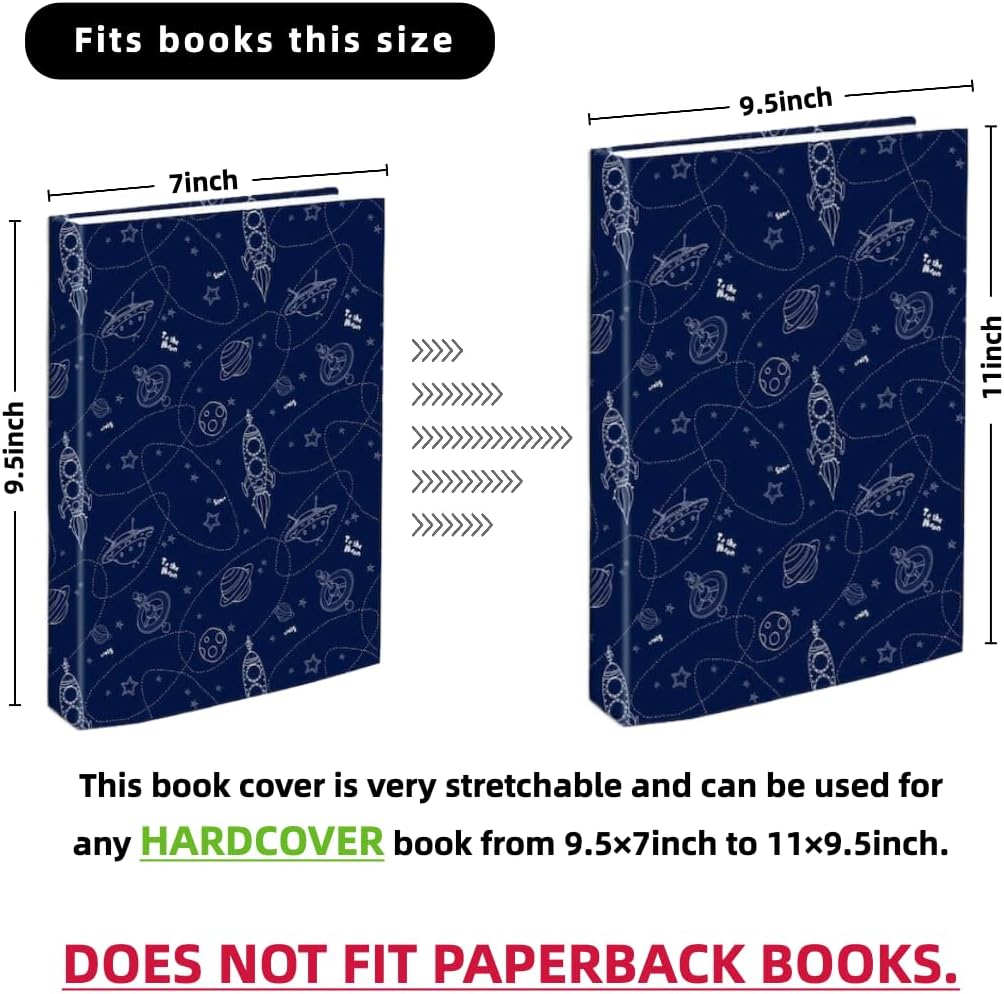 【Cute and Cool Designs】: Elevate your book collection with our set of 6 stretchable book covers featuring cute and cool designs. These covers fit hardcover books ranging from 7” x 9.5” to 9.5” x 11” in size. PLEASE MEASURE YOUR BOOKS CAREFULLY.