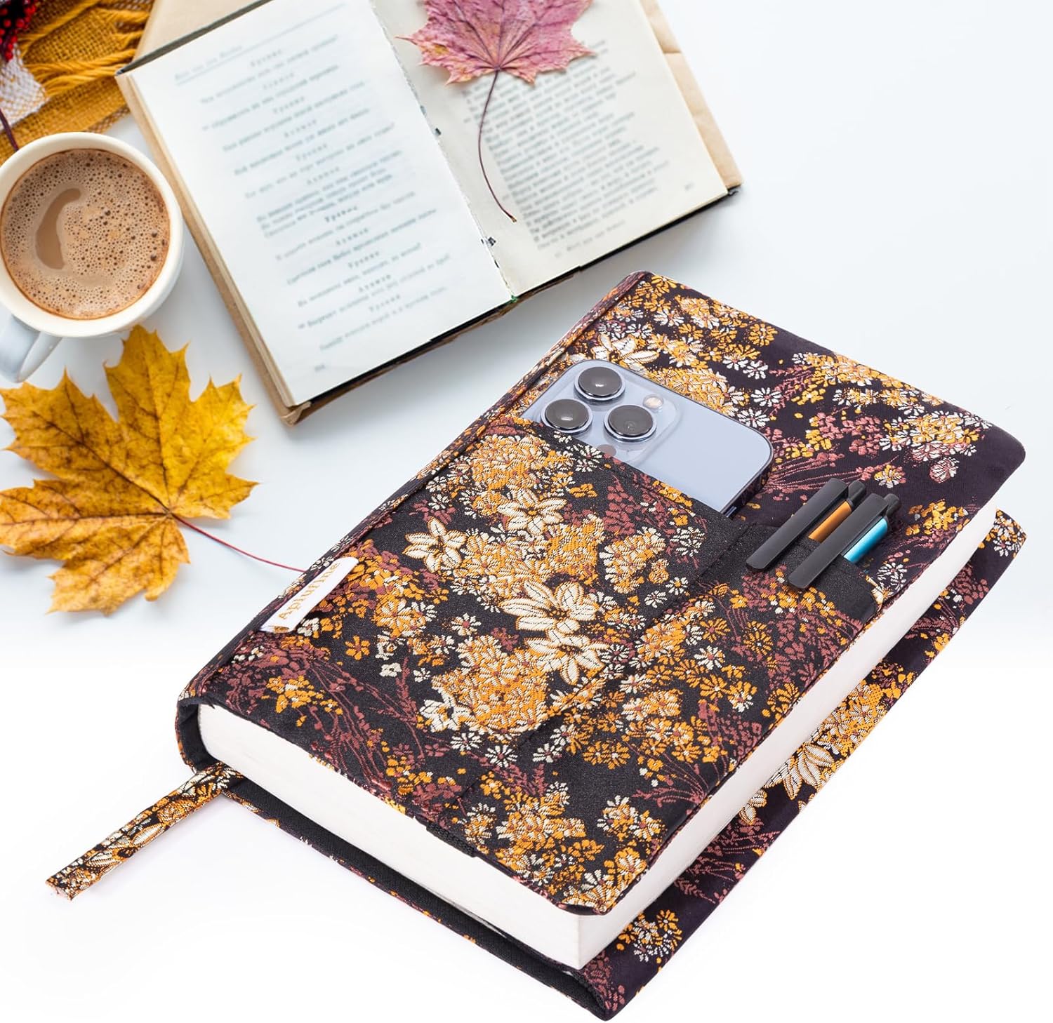 Book Covers with Cardholder – Fabric Dust Jackets for Books – Book Protector for Book Lovers – Book Covers for for Paperbacks,Hardcover,Bibles – Soft Cover Book Sleeve for AA Books