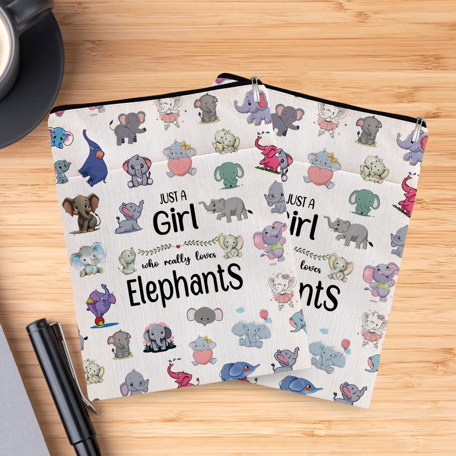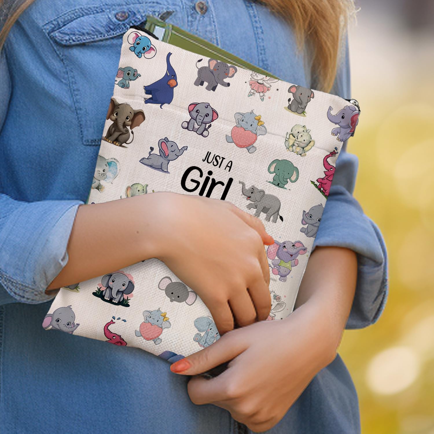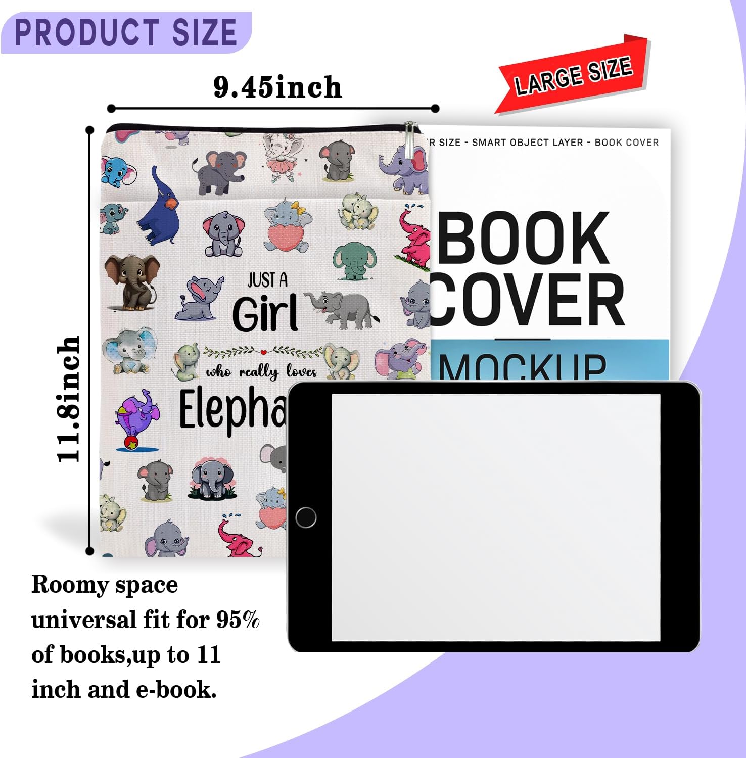 Book Lovers Gifts Book Sleeve,Book Cover with Zipper for Zipper Canvas Book Protector Paperback Cover for Women Birthday Graduation Christmas Gifts-Just a Girl Loves Animal (Beige-Elephants, Large)