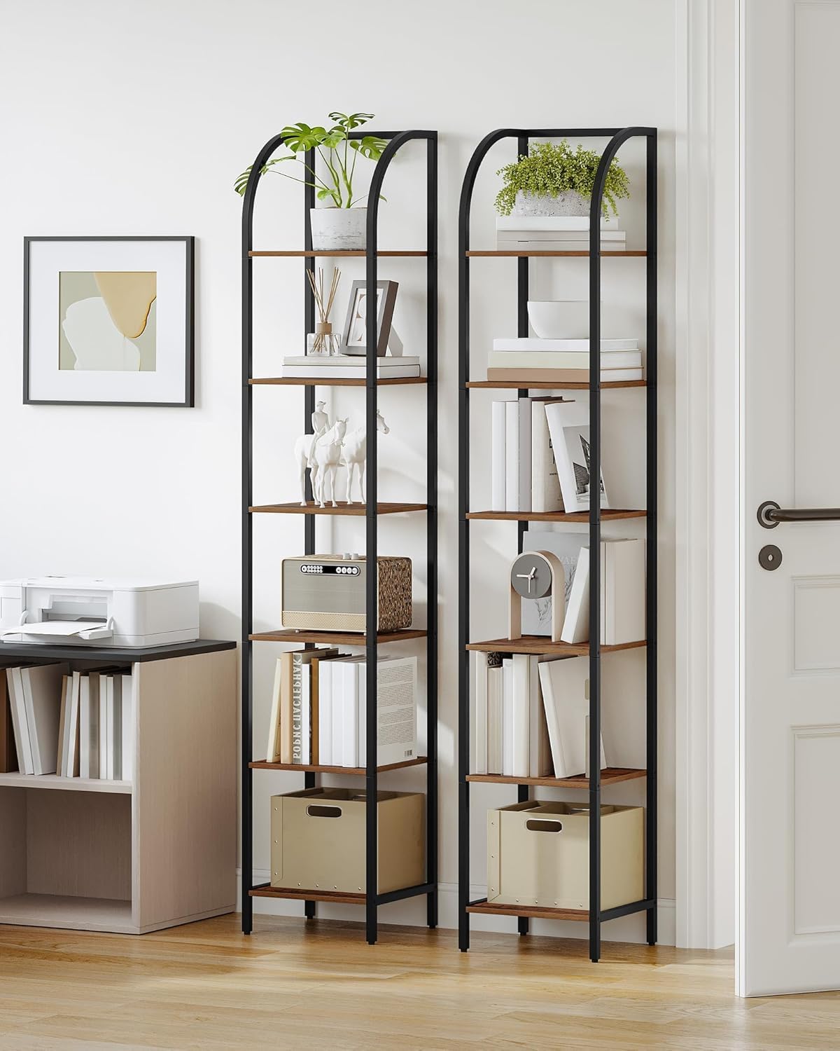Space saving: The bookshelf measures 13.2 x 11.8 x 59.2 inch, the narrow bookshelf provides you with vertical storage space, saves space and organises things better. Suitable for living room, bedroom, study, balcony, kitchen, etc.