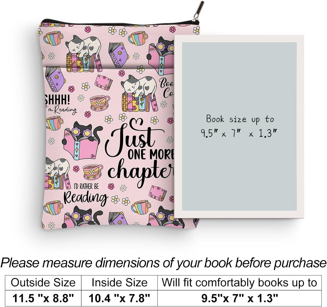 Cat Book Sleeve for Book Lovers, Coffee Book Lover Gifts for Readers Book Lovers Women, Cute Cat Lover Gifts for Cat Lovers Women Book Sleeve with Zipper, Cat Book Cover for Paperbacks Hardcover