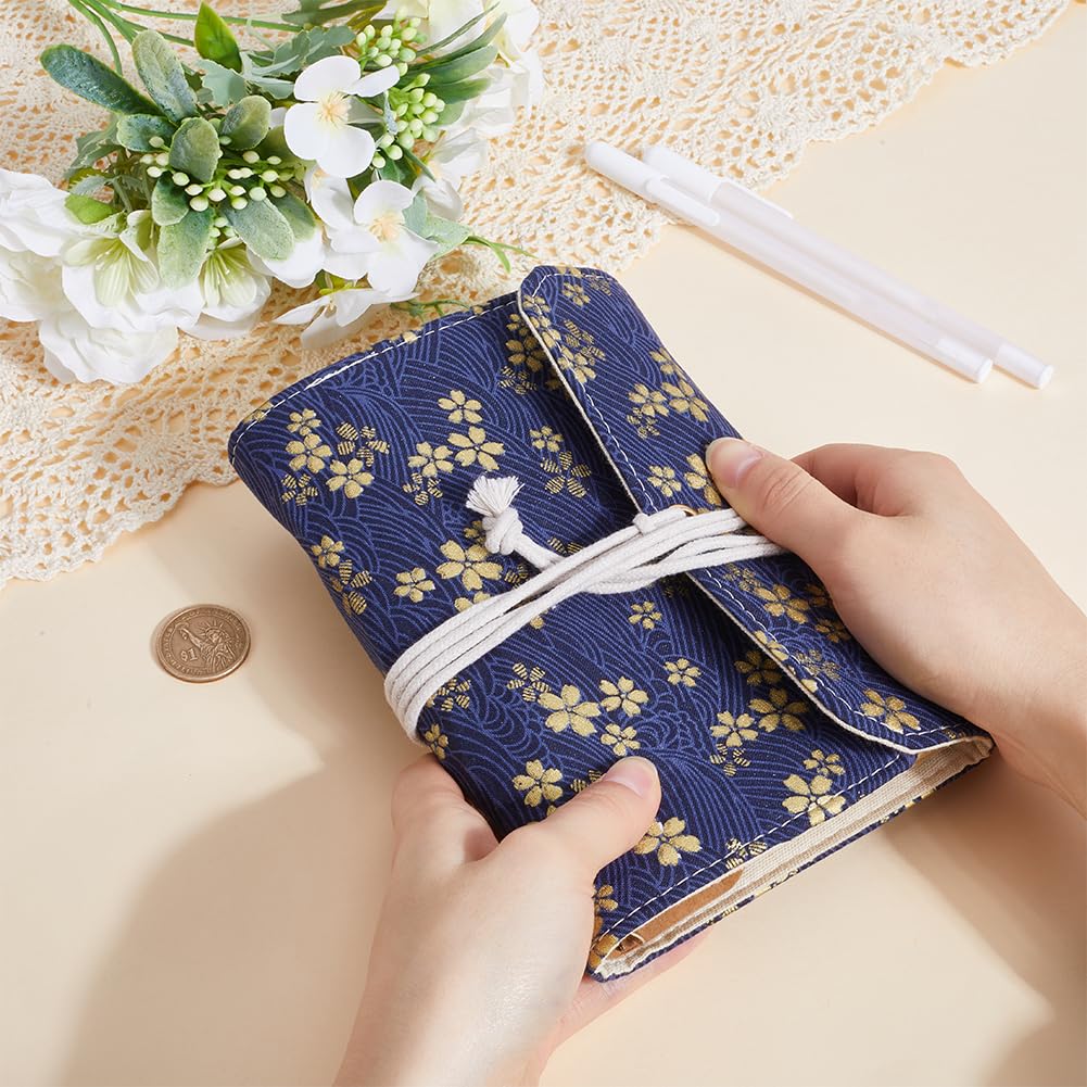 CRASPIRE A6 Book Sleeve Cover 6 Ring Binder Organizer Cloth with Rope Cherry Bloom Floral Flower Sea Wave Washable Book Protector Fabric for Notebook Novel Journal Textbooks Case Diary Decor