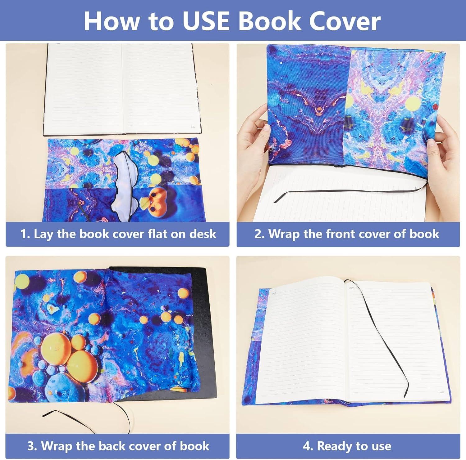 Easy To Install: You only need to stretch the jumbo book covers over the cover of your books, no measuring or cutting required, no taping or gluing required,the fabric book sleeves will protect your books against bumps, scratches, wears and tears for years.