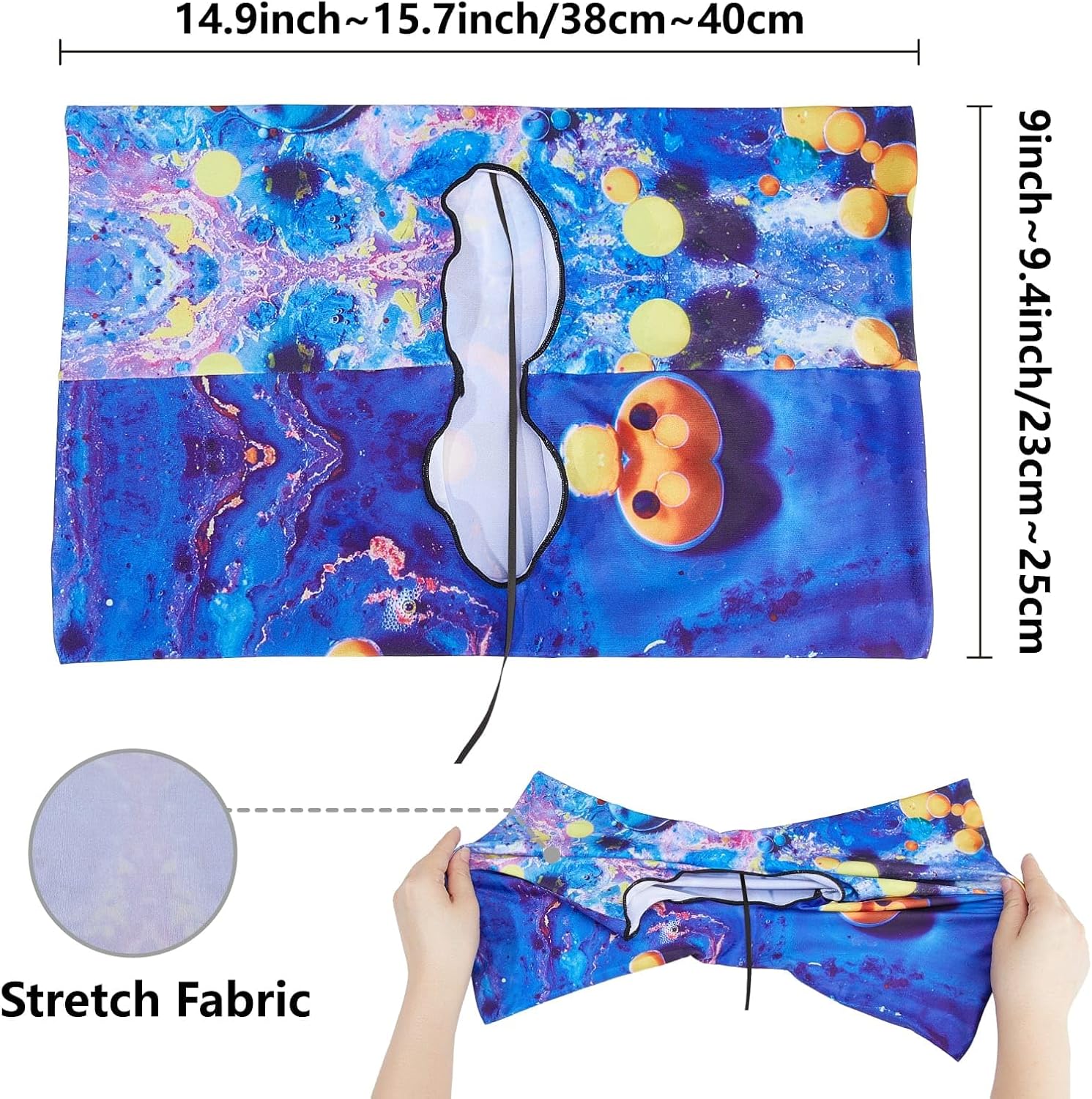 Stretchable Book Cover Size: Stretchable book cover tiling size about: Length 14.9-15.7 inches (38-40cm), width 9-9.4 inches (23-25cm), due to the special elasticity material, a dimensional error within 2cm is considered normal. (NOTE: Please make sure the size is suitable for your book before purchasing)