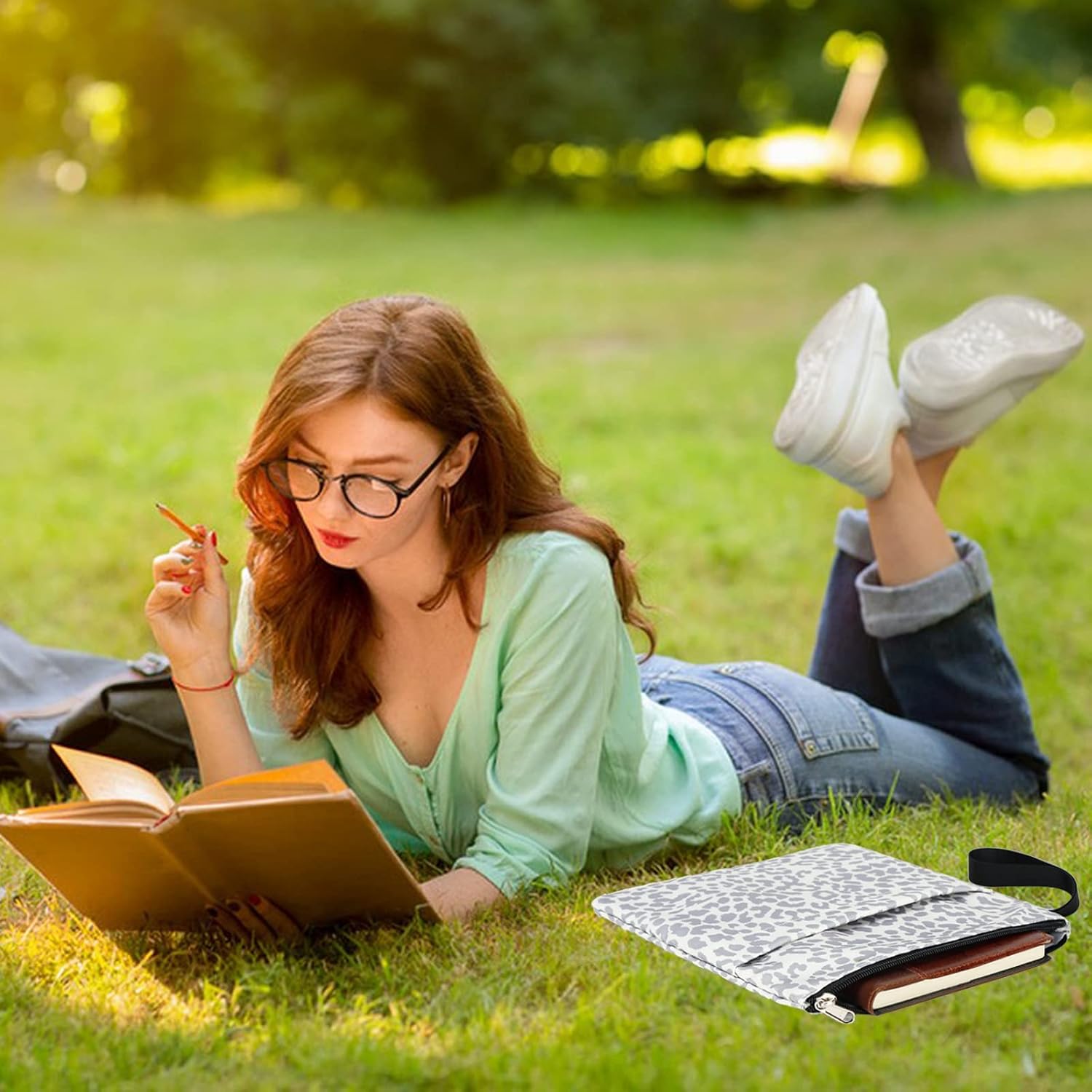 【EXTRA STORAGE】The book sleeve also has a front pouch for storing notebooks, kindle, small diaries, stationery, glasses, bookmarks, pens, and even some small decorative accessories!