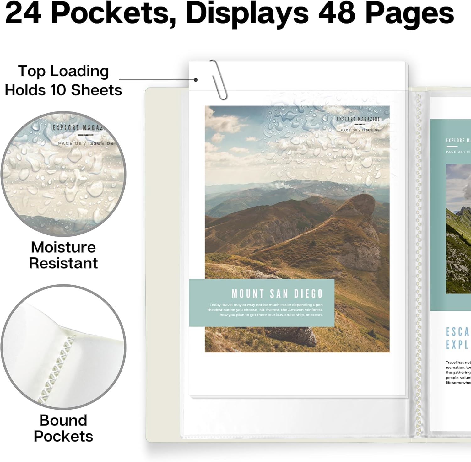 Includes: 2 Ivory color 5.5 x 8.5 binder folders with 24 bound (non-refillable) top-loading plastic binder sleeves, Portfolio 5 x 8 displays 48 viewable pages of 5-1/2 x 8-1/2 content.
