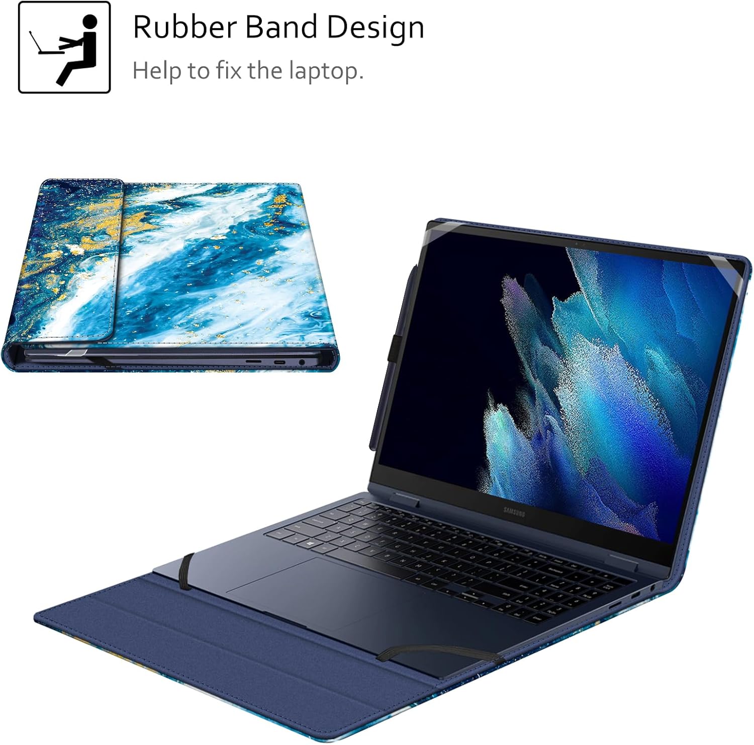 Magnetic closure design make sure your Chromebook secure in place. Rubber band design helps fix your chromebook.