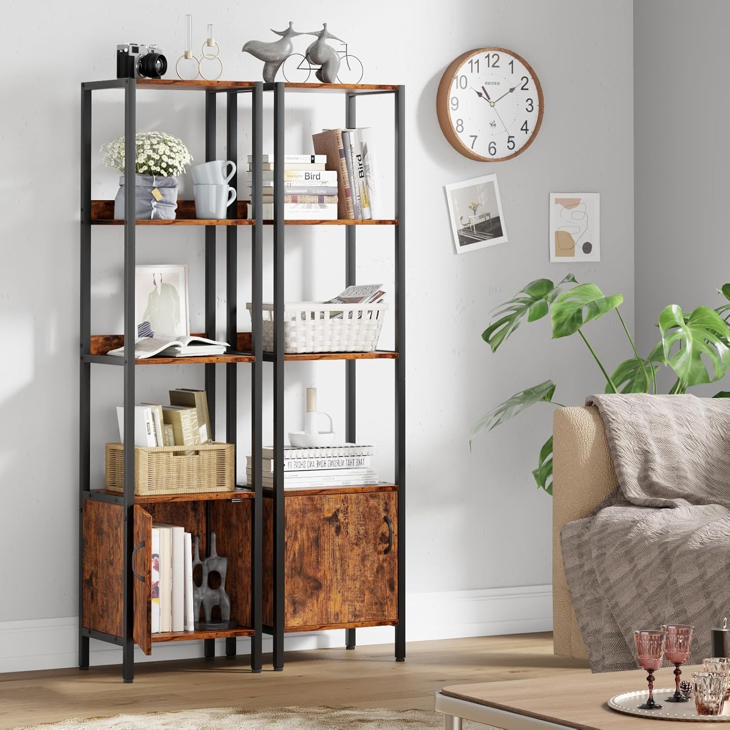 Bookshelf with Storage Cabinet for Living Room