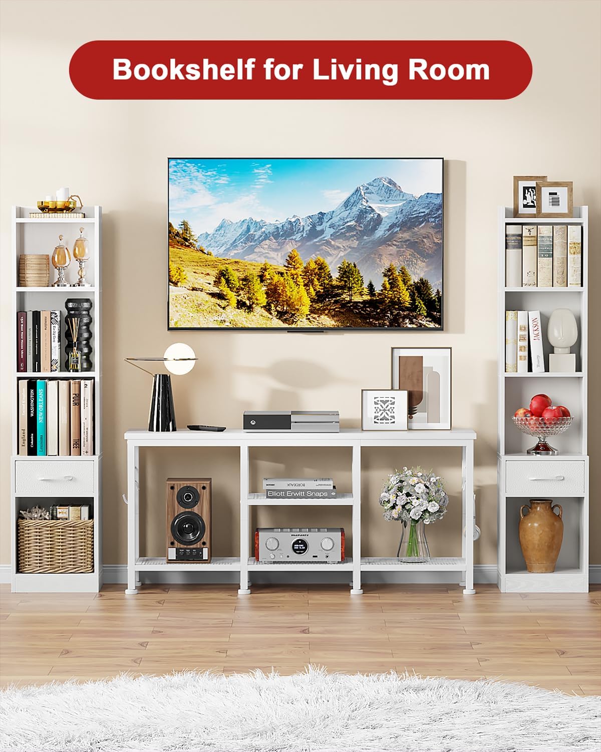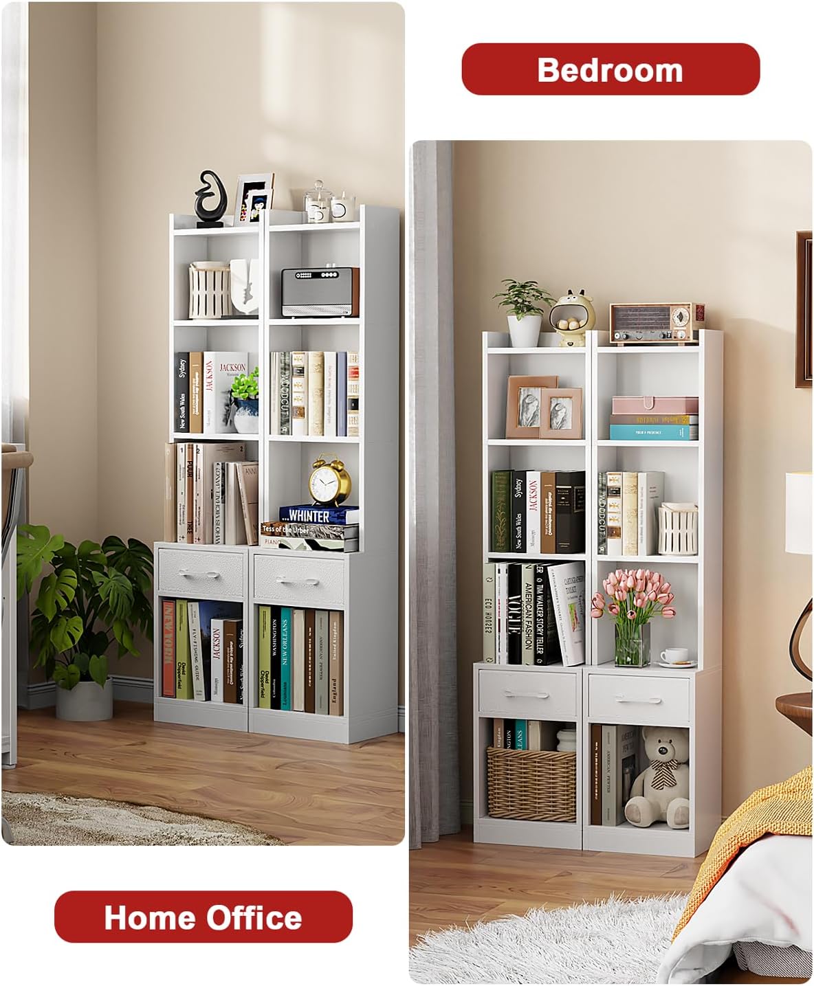 Eco-Friendly Durability: Crafted from sustainable MDF wood bookshelves with a waterproof, scratch-resistant finish, this freestanding shelving unit resists warping and lasts for years. Otherwise, the anti-tip design can prevent tipping accidents – ideal for homes with pets or children