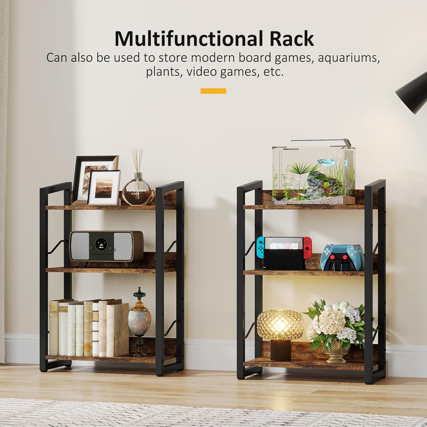 Vintage Wooden Bookcase: This bookshelf adds a touch of linear industrial charm and rustic vintage coziness to your room. The neutral colors and simple design match perfectly with different furniture styles, making this bookshelf an excellent choice for any home décor