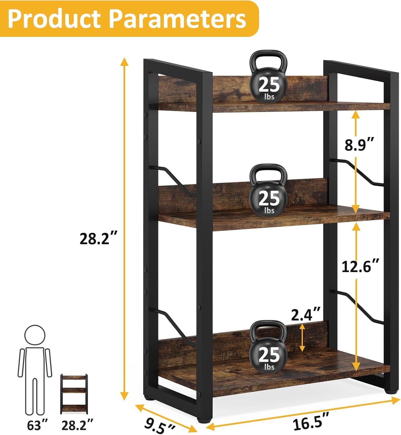 This Industrial Bookshelf measures 9.45″D x 16.45″W x 28.19″H. The compact design is perfect for small spaces while providing extra storage.