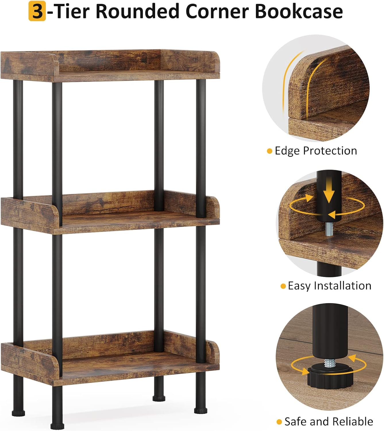 Hosfais Bookshelf Small Book Shelf, 3 Tier Wood Bookcase Industrial Bookshelf Metal Standing Book Shelves Display Book Rack for Living Room Bedroom Home Office (Rustic Brown)