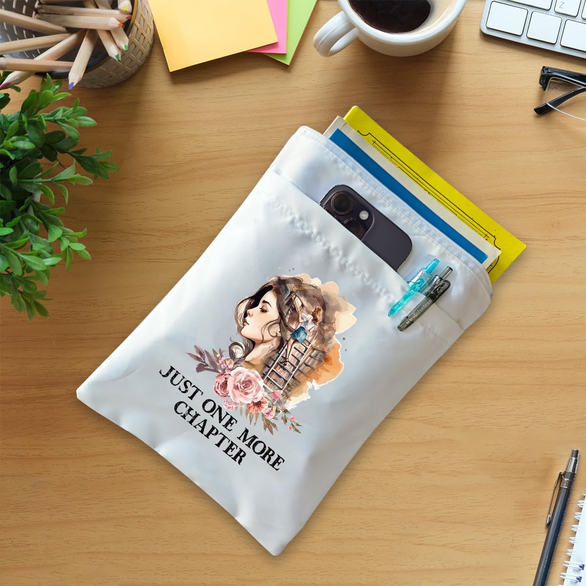 Just One More Chapter White Washable Fabric Book Sleeve, Beautiful Flower Book Cover Protector Gift for Book Lover, Book Reader Gift, Bookish Gift, Book Club Gift, Bookworm Librarian Gift