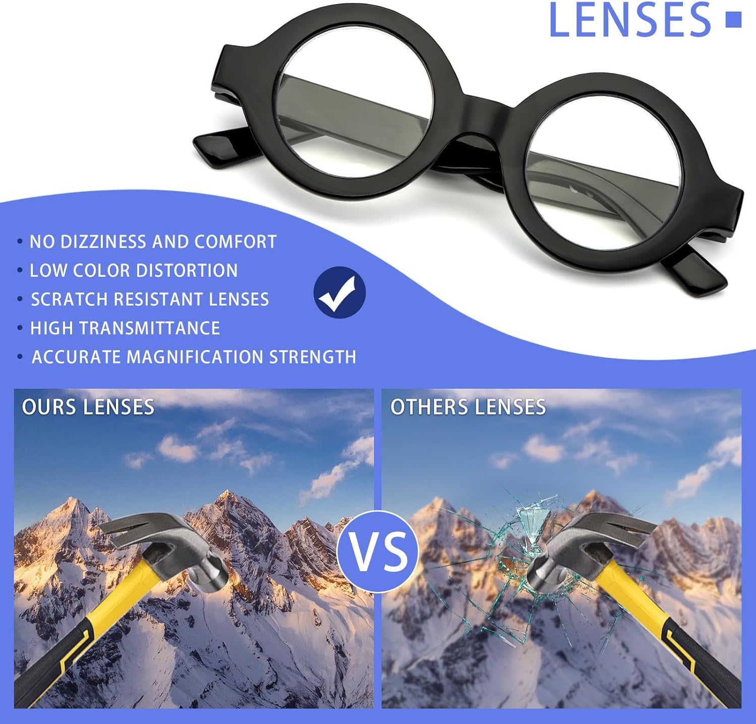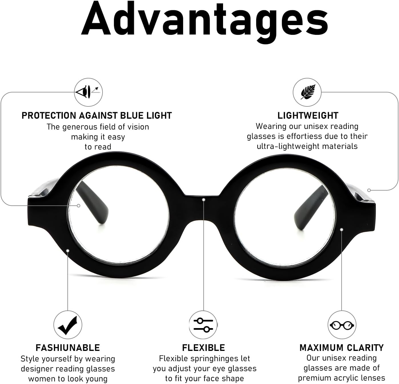 KoKoBin 3 Pack Oversized Round Reading Glasses for Women and Men Blue Light Blocking Comfortable Readers