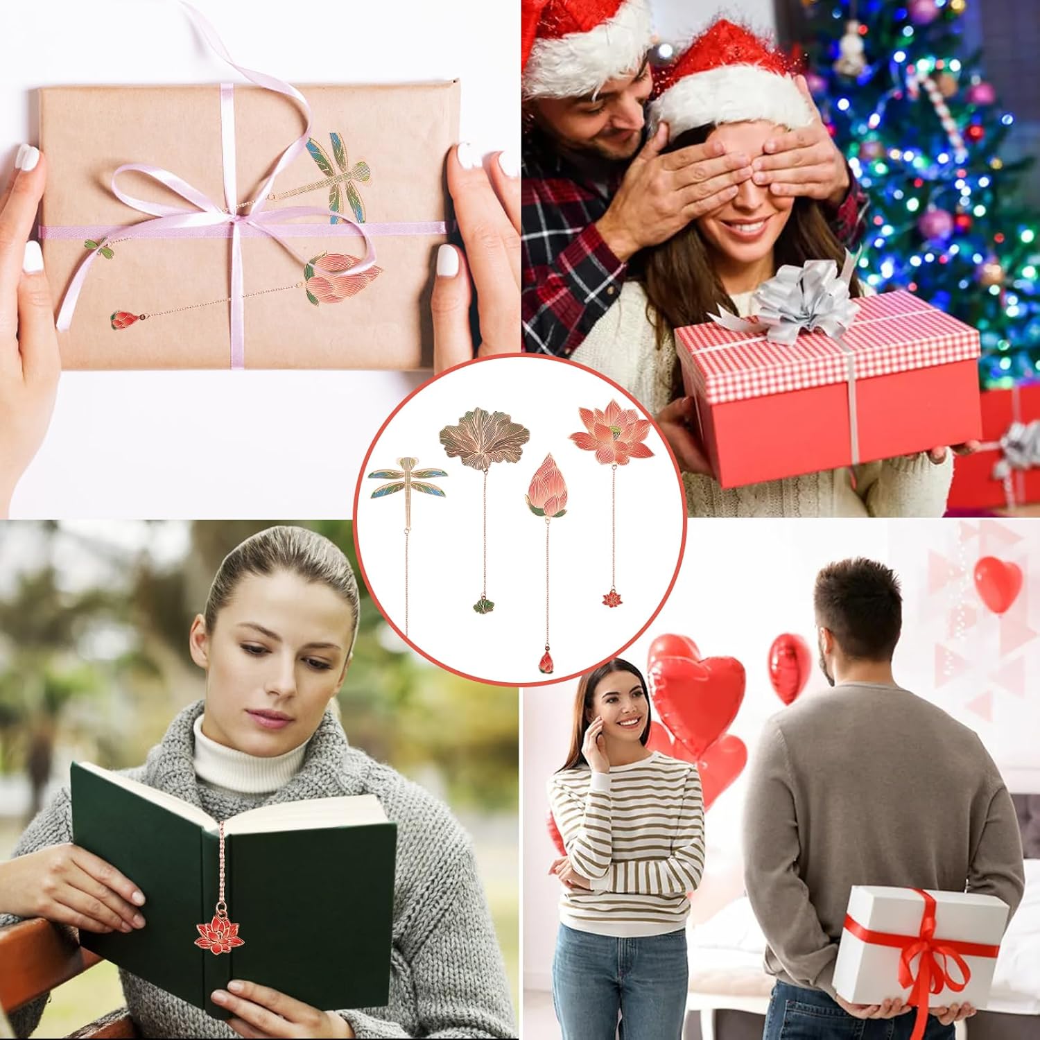 Package Includes: 4 hollow metal bookmarks with chain and comes in a beautiful gift box