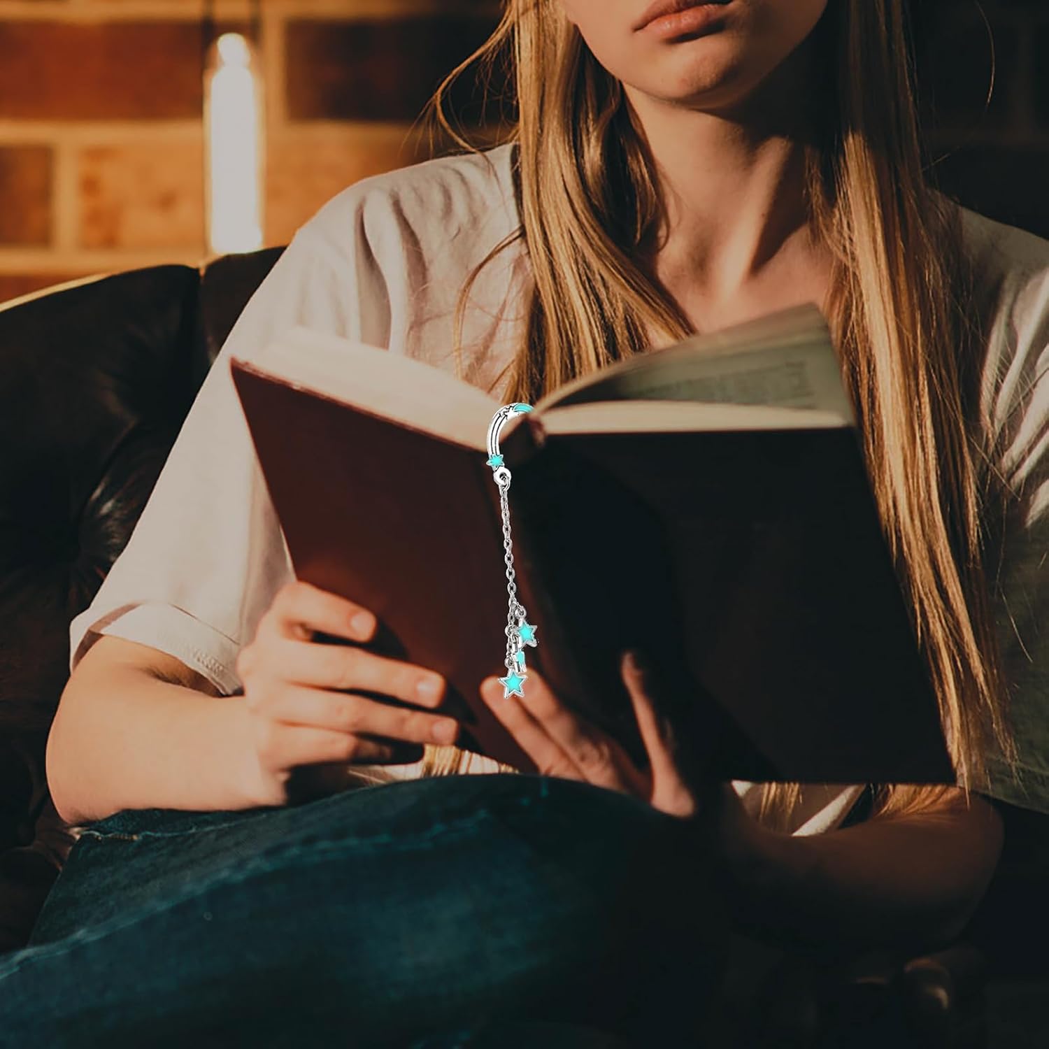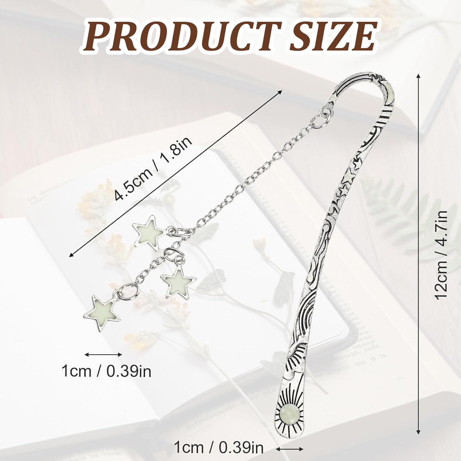【Luminous Glow-in-the-Dark Feature】The moon and stars bookmark is coated with a special resin layer that allows it to glow in the dark. This feature makes it easier to locate your bookmark in low light and adds a decorative element to your desk or bookshelf, both day and night.