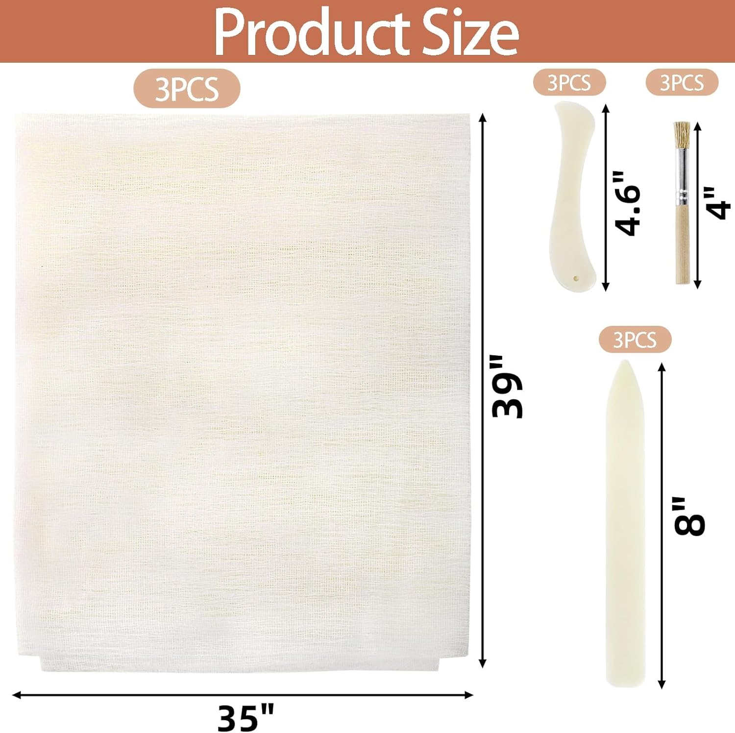 Perfect Combination: Each package contains 3 sheets of archival, acid-free bookbinding cloth measuring 39 x 35 inches, 6 bone folder paper creasers in assorted styles, and 3 wooden stencil brushes measuring approximately 4 inches. This thoughtfully curated combination ensures convenience and efficiency in repairing the spines of old books.