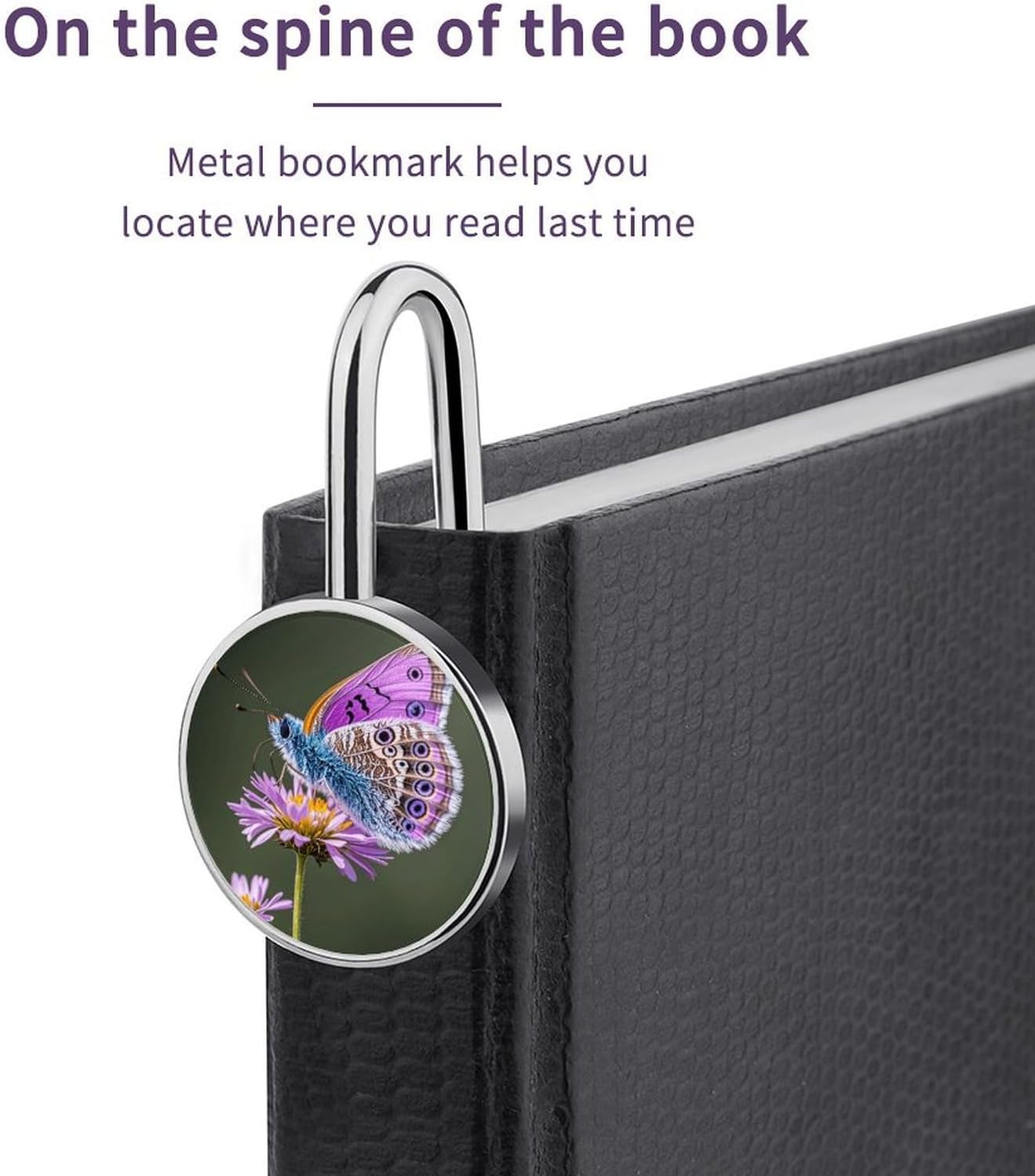 1″ Personalized Metal Bookmarks Lovely Purple Butterfly Printed Cool Bookmarks for Women Vintage Bookmark Hook Book Clip for Bookworm Bookmate Gift