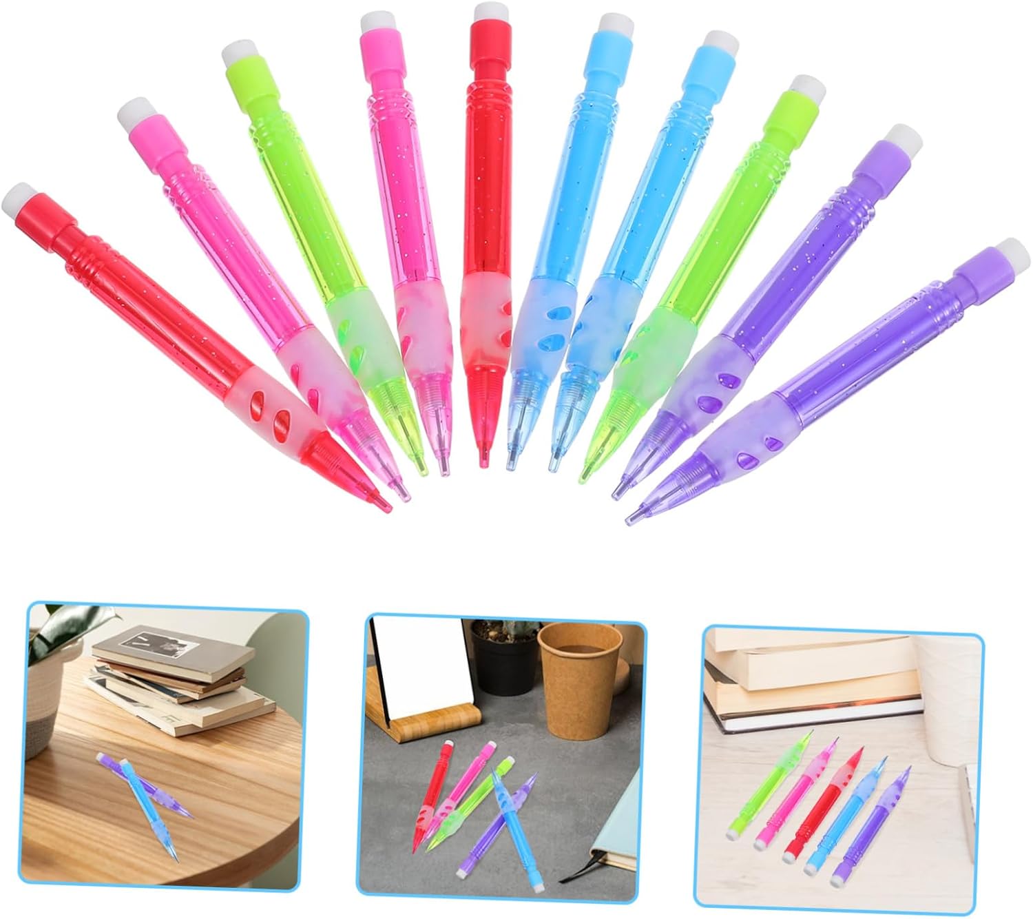 10pcs Mini Mechanical Pencils with Erasers for Home Office School Supplies Ideal for Writing and Drawing Assorted Colors