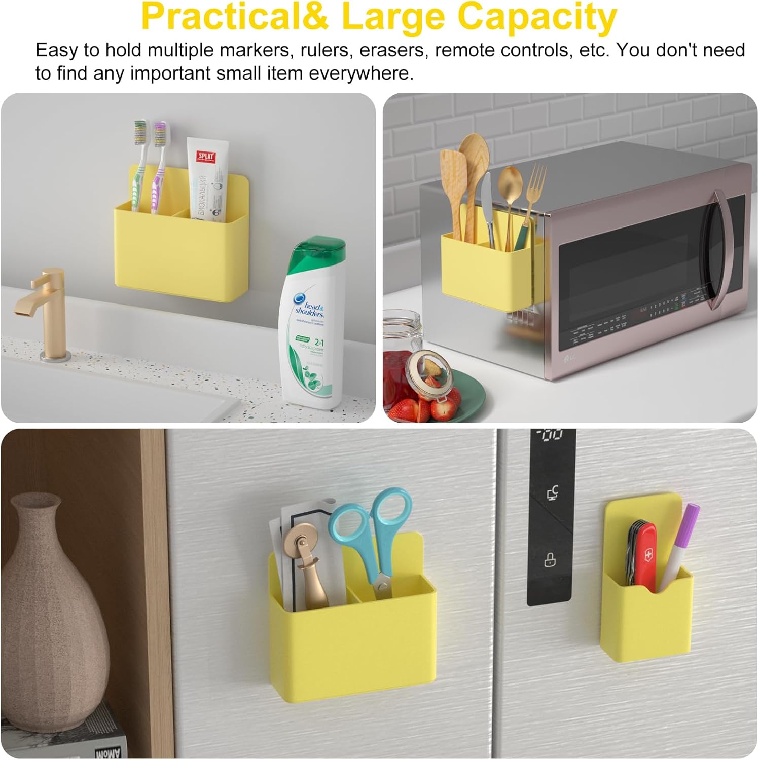 2 Pack Magnetic Dry Erase Marker Holder, Whiteboard Marker Holder, Magnetic Pen Holder, Magnetic Marker Holder for Fridge, Whiteboard, Locker, Magnetic Cup for Dry Erase Board -Yellow