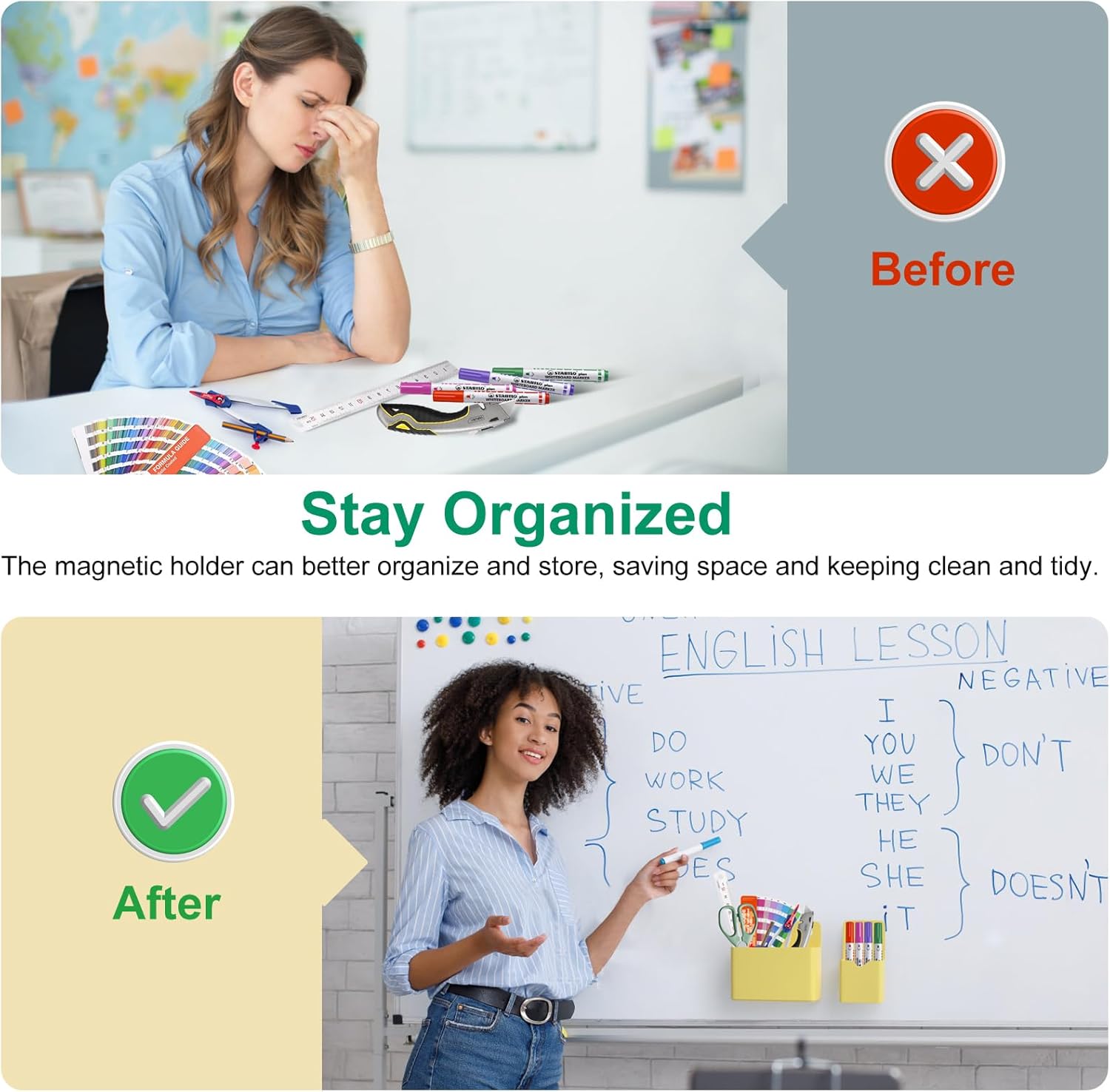 【Eco-friendly Material & Durable】- The magnetic marker holder is made of high-quality ABS material with magnetic back, our magnetic cups are durable, lightweight, and Eco-friendly, no-toxic and no-smell, perfectly safe. The magnetic pen holders can add tidiness and elegance to your workspace as office décor, stable for long lasting time use.