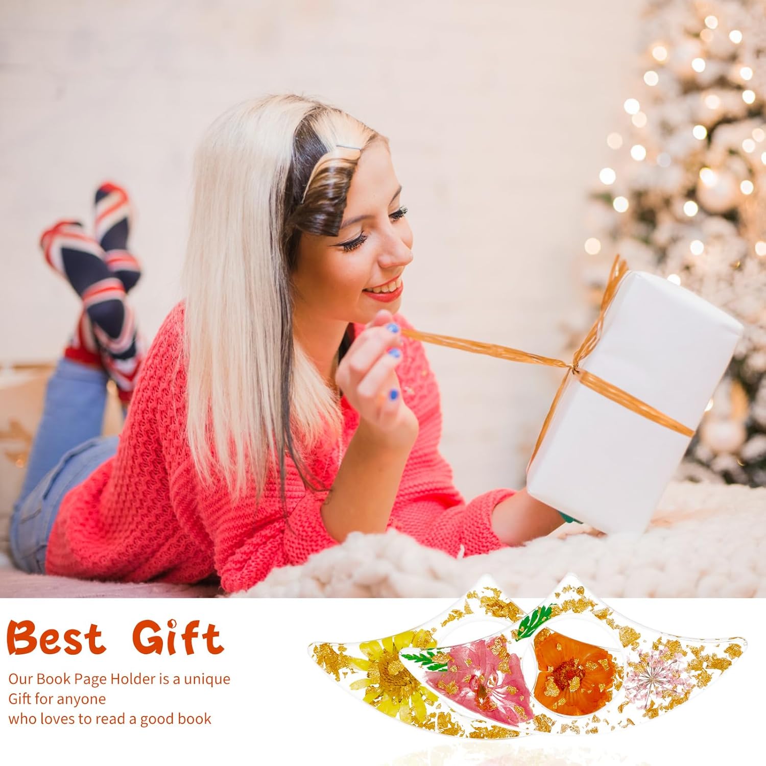 2 PCS Book Page Holder for Reading, Dried Flower Book Holder Thumb Book Page Holder Book Lover Gifts Resin Bookmark Thumb Bookmarks Book Accessories for Reading Lovers(Color A)
