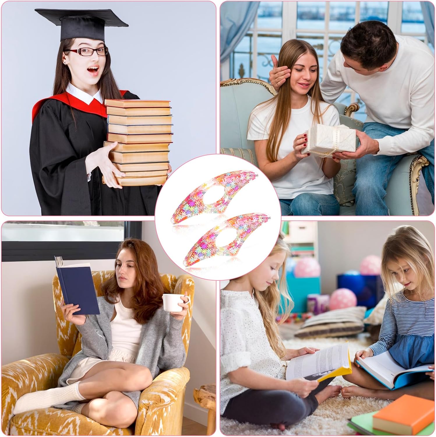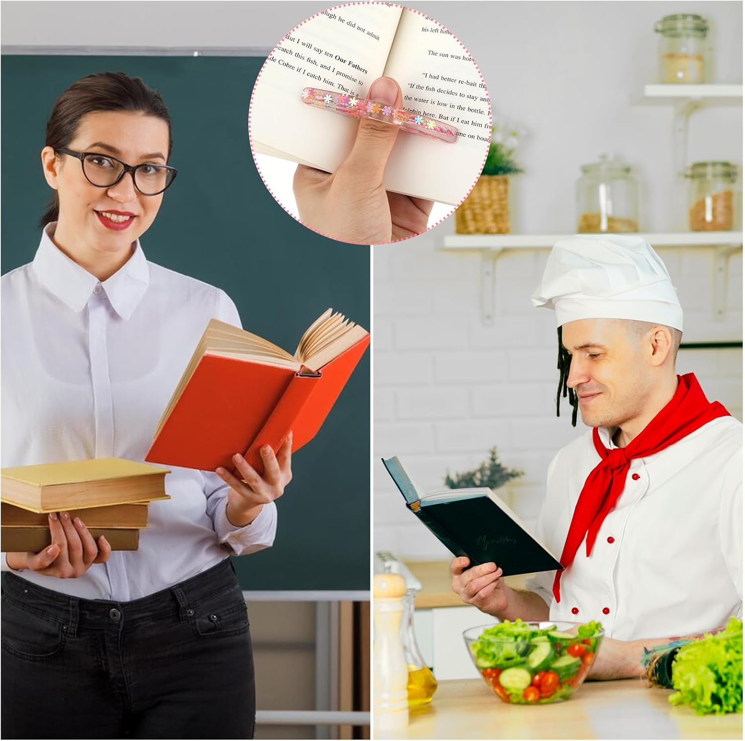 【Handmade and High Quality】You will receive 2pcs of handmade book opener holders. These resin thumb bookmarks are handmade with delicate resin material, ensuring durability and elegance. The elegant and colorful resin rhinestones make our sector book accessories for reading lovers sturdy and wear-resistant, preventing tearing, fading, or falling off, ensuring a pleasant user experience.