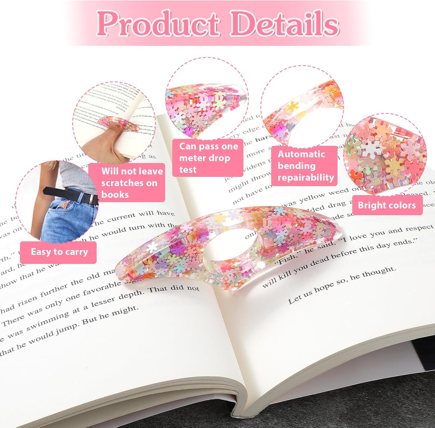 【Snowflake Sequins Design】 Our book thumb page holder blends sophistication with practicality. Departing from traditional bookmarks, our exclusive glitter thumb ring features delicate snowflake sequins, casting a captivating light. Twinkle, twinkle, the crystal clear resin process can show the best of colorful snowflakes, adding refined elegance to every page turn.