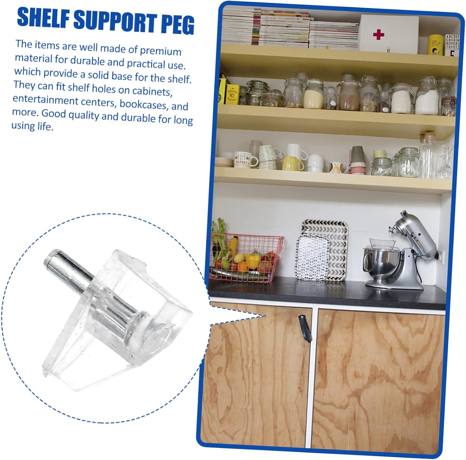 – Color: Transparent Cabinet Shelf Pegs.