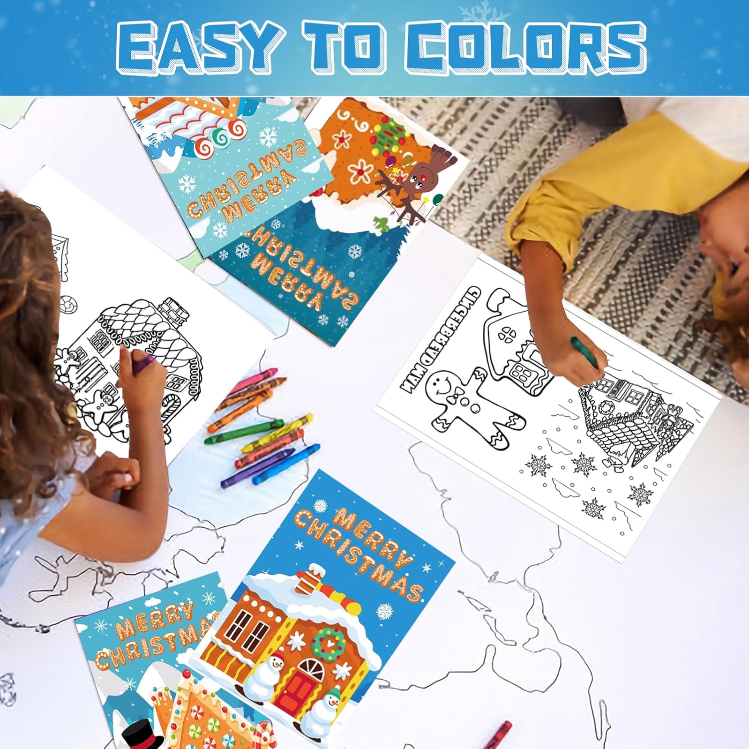 24Pcs Merry Christmas Gingerbread House Coloring Books for Kids, Christmas Gingerbread Mini DIY Art Drawing Party Favors for Boys and Girls Home Holiday Activity Books.