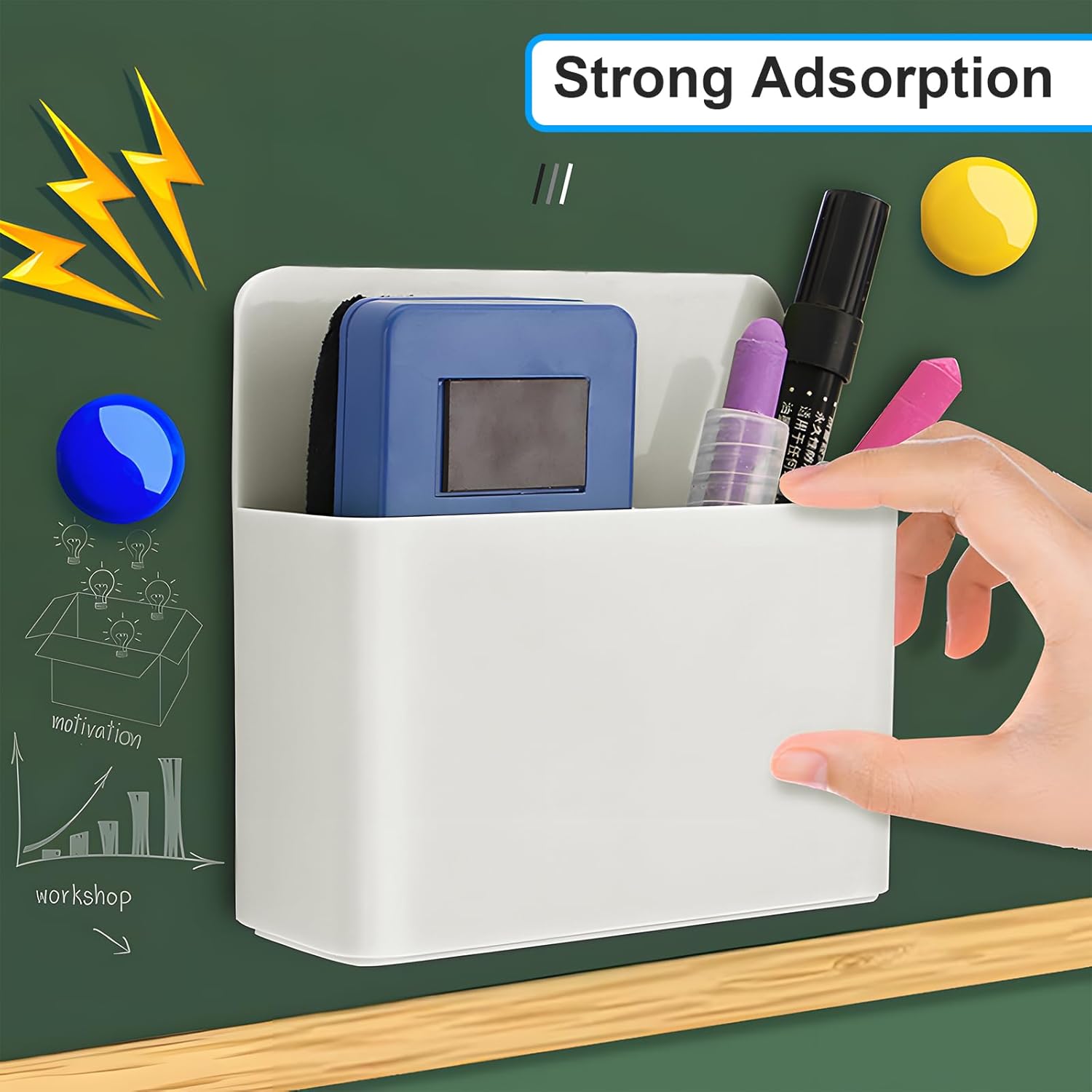 Premium Materials: These magnetic marker organizers are made of quality ABS plastic & powerful magnet back panel, eco-friendly, odorless, durable and lightweight for long lasting time use.