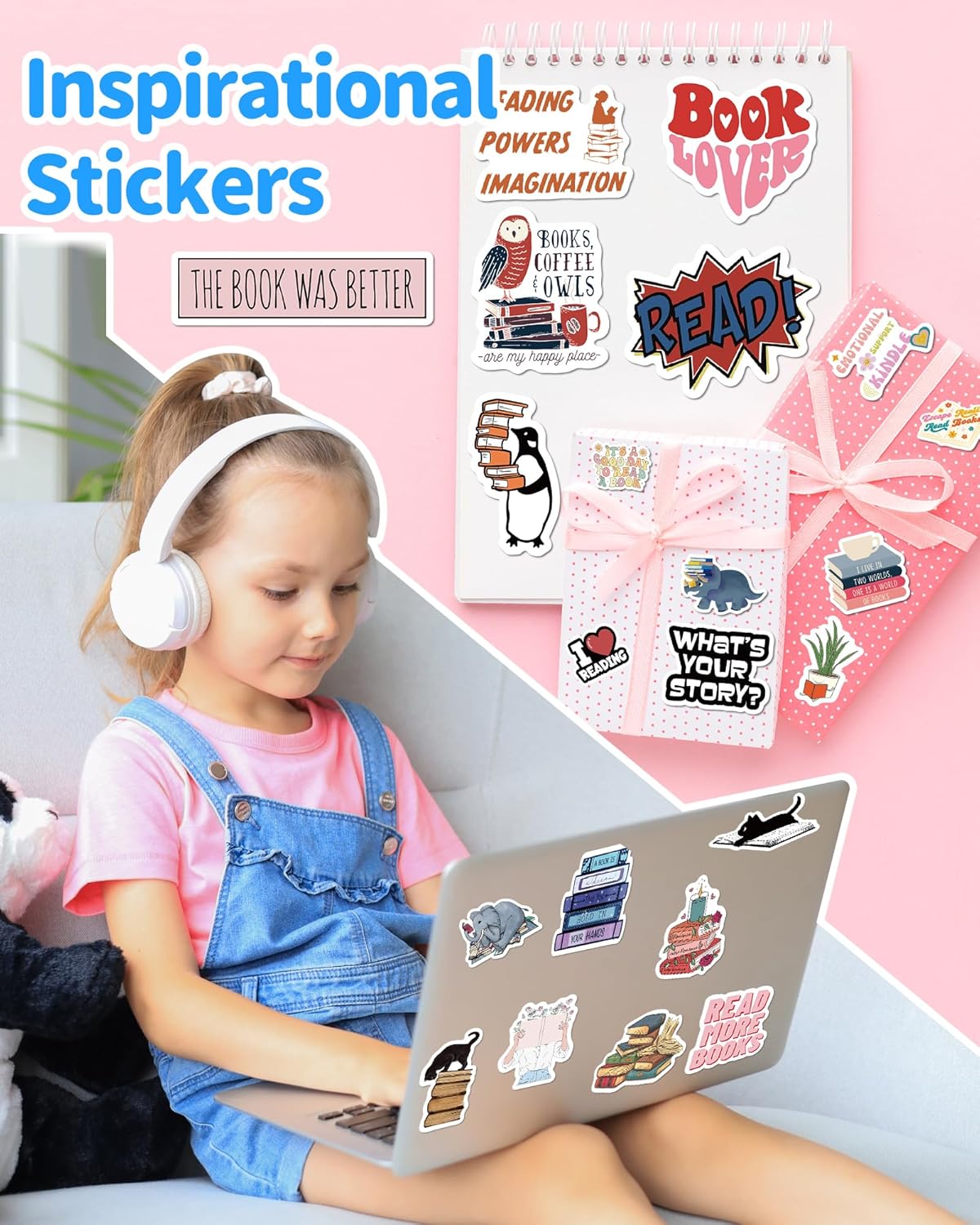 IDEAL GIFTS FOR ADULTS & TEENS: Awesome assortment of book stickers, ideal rewards for teens, girls, students, adults. These bookish stickers have been carefully selected with inspirational slogans and reading scenes, so that inspire them to read more books.
