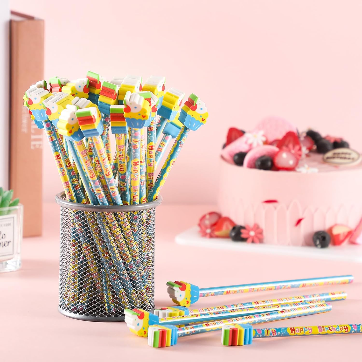36 Pcs Happy Birthday Pencils for Students Bulk Wooden Pencils with Cupcake Erasers Cute Pencils for Kids Birthday Pencils for Party Favor Teacher Classroom Reward Supplies