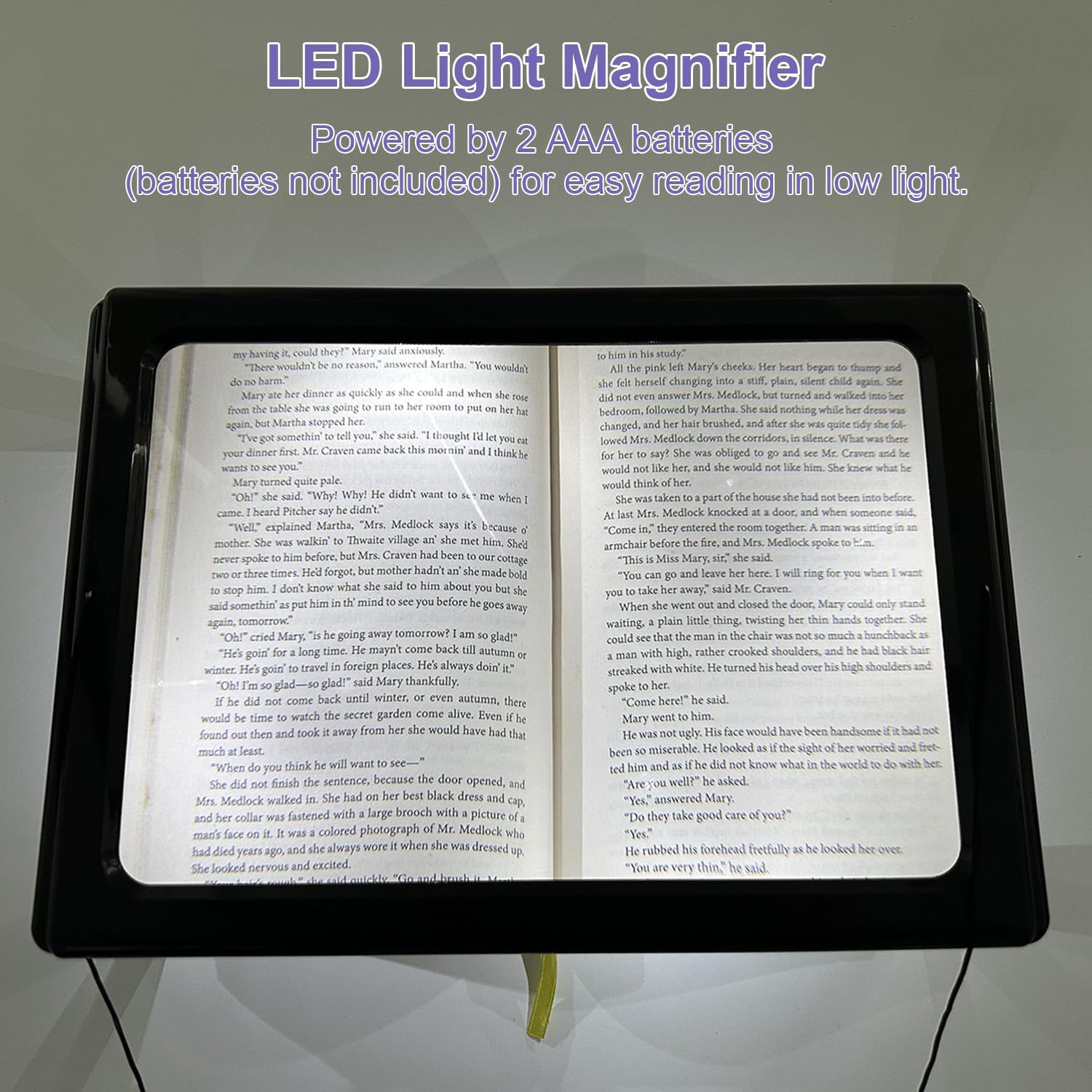 【LED Lighted Magnifying Glass】The rectangular page magnifier is designed with 4 LED lights, The lighted magnifying glass can also provide you with enough brightness at night.