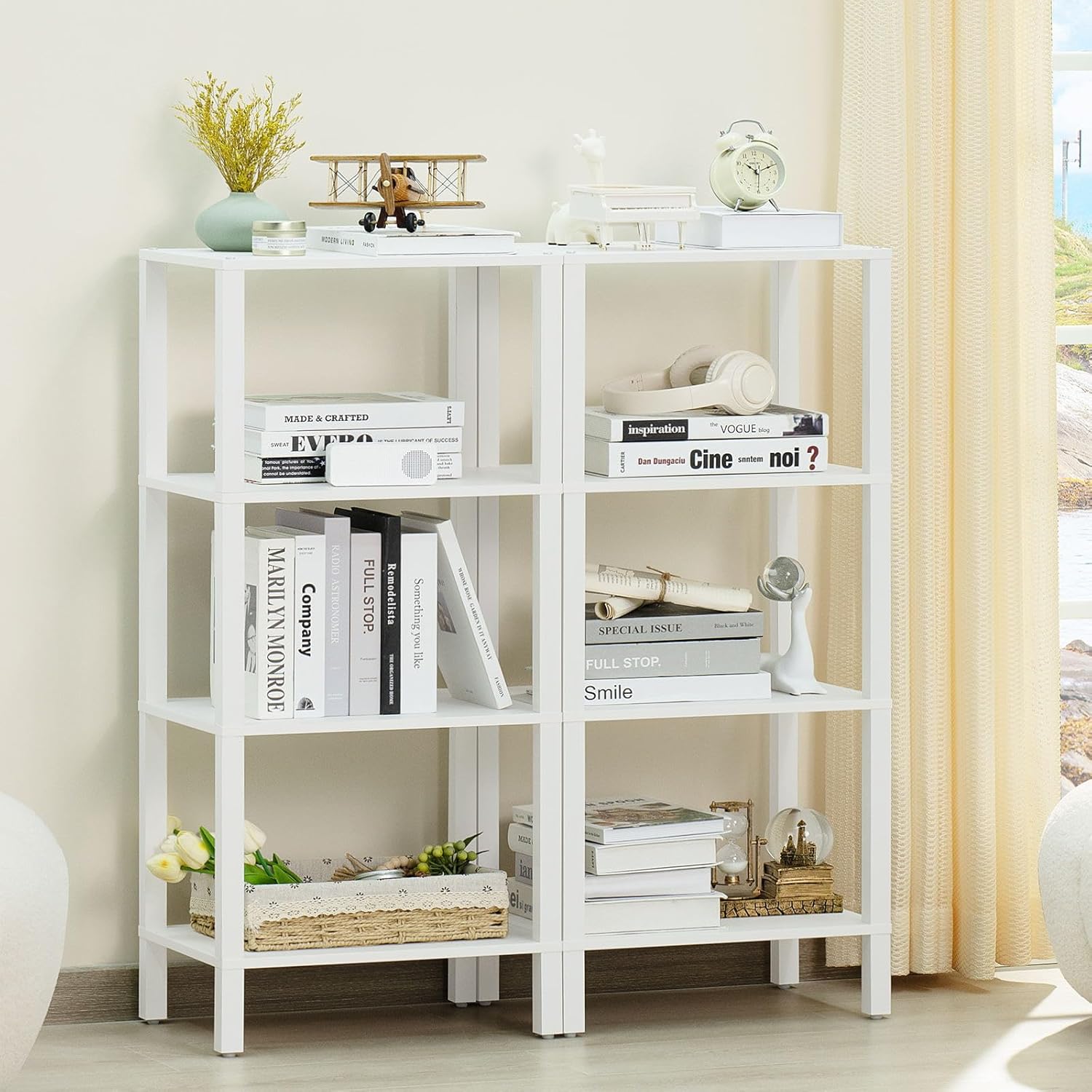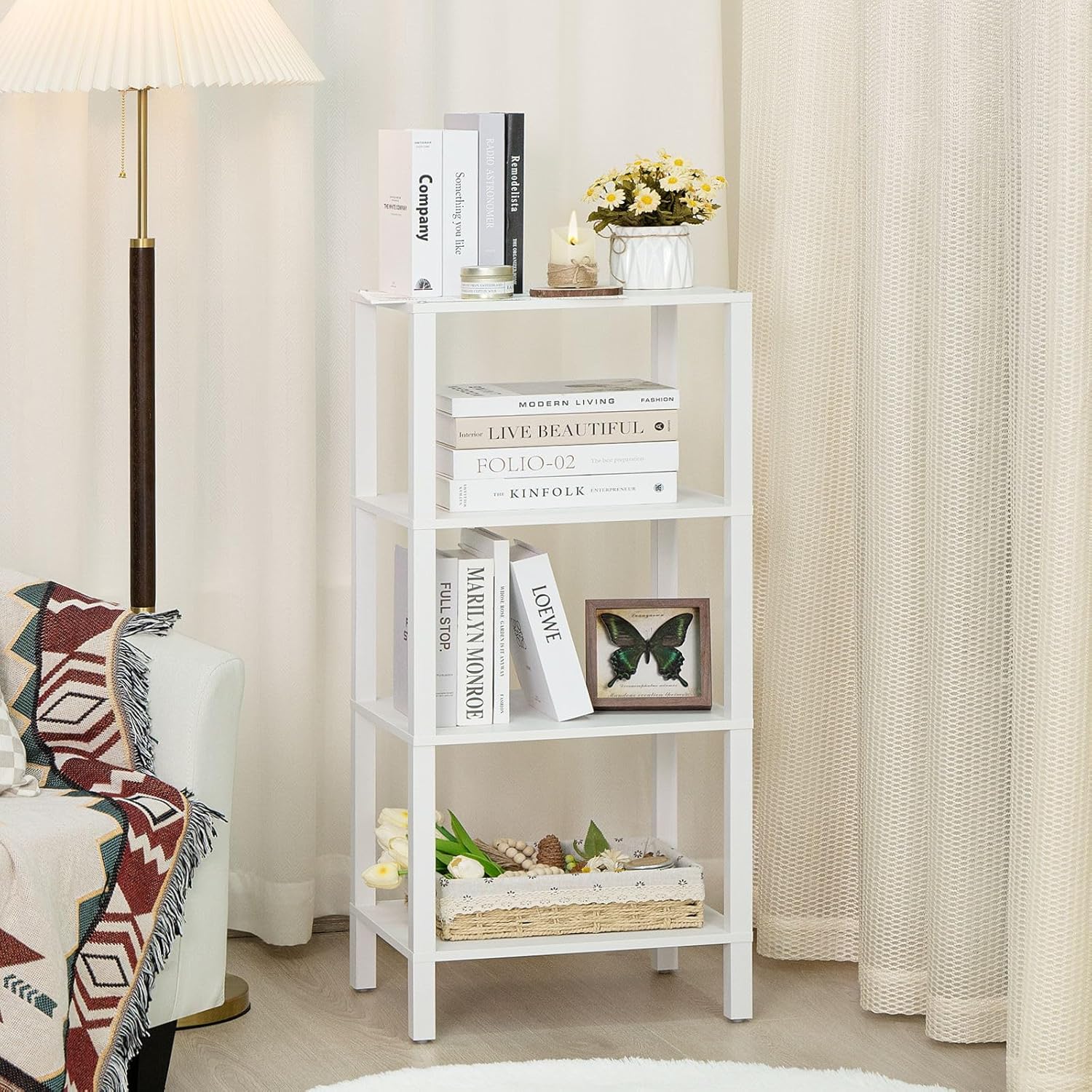 ใ๐๐ถ๐๐ ๐๐๐ฒ๐ฟ๐๐๐ต๐ฒ๐ฟ๐ฒใThis 4-tier tall bookshelf has a stylish minimalist design and is versatile, place this industrial style slim bookcase in your home, office or anywhere you need extra storage space to display and organize books, plants, or other decorative items.