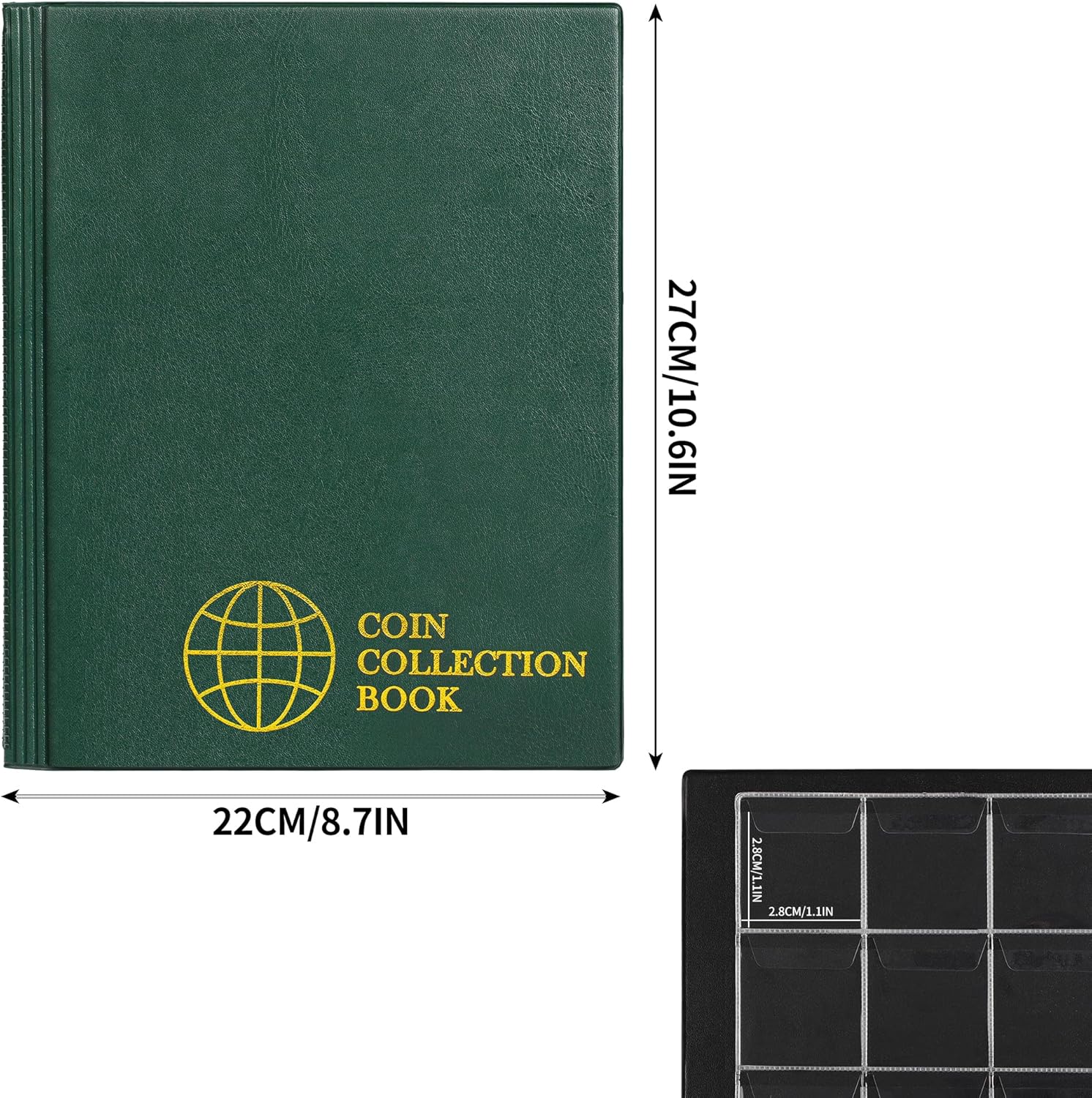420 Pockets Coin Albums – 28×29 mm/1.1×1.1 inch Pocket Green Coin Book 10 Pages Coin Collection Holder Letter Size Coin Storage Book CS0242GR