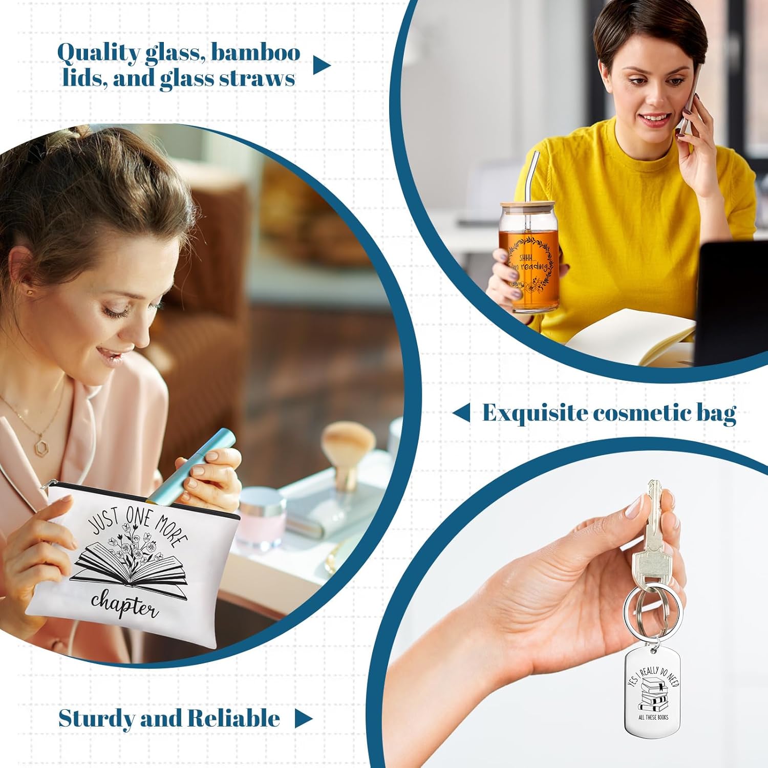 Book Lovers’ Package: discover a book lovers gifts set containing 1 16 oz glass cup, 1 makeup bag, 1 gift box with clear window, 1 pair of amusing novelty socks, and a stainless steel keychain; Crafted intentionally to satisfy the taste of book enthusiasts, this package serves as the nice gift to celebrate the love of literature with the people you treasure
