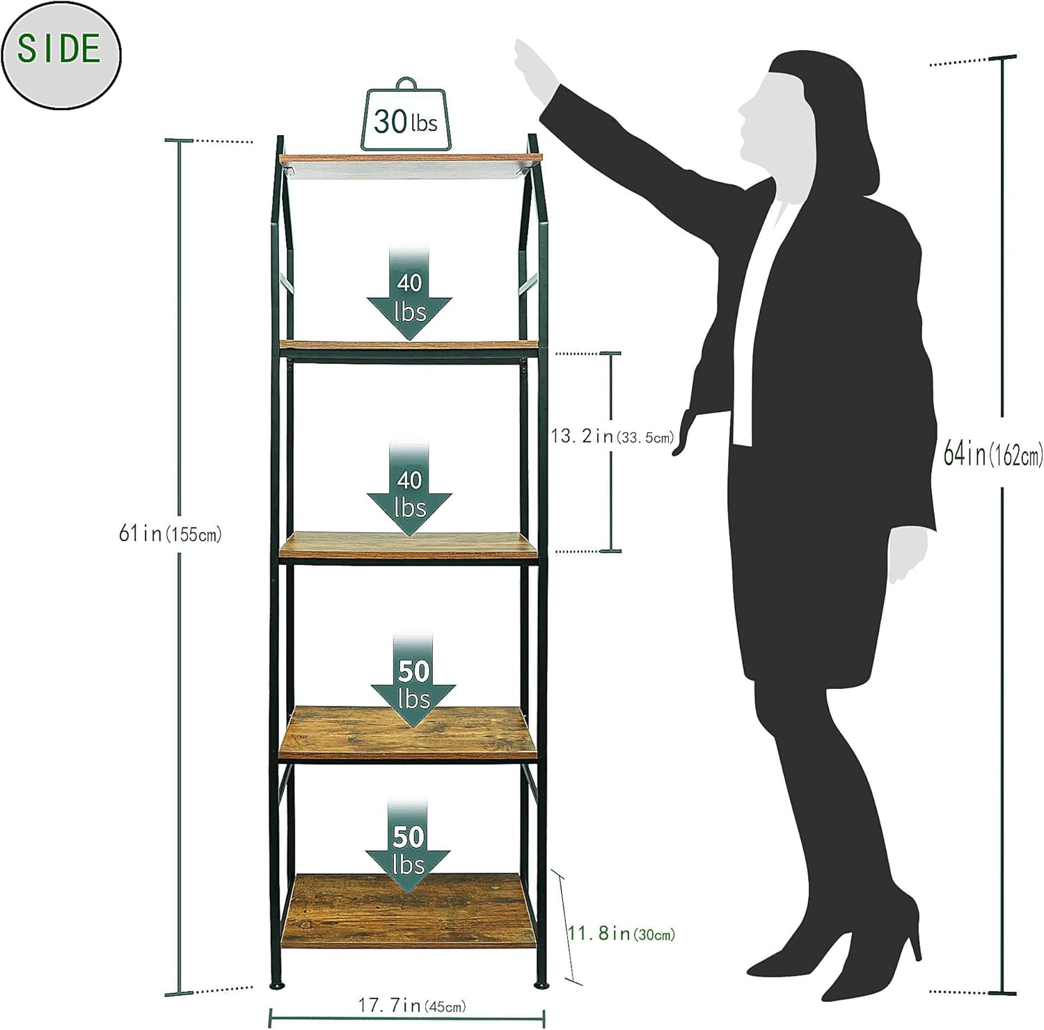 5 Tier Bookshelf, Tall Book Shelf Bookcase, Rustic Bookshelves, Industrial Book case, Freestanding Shelving Unit for Bedroom, Home Office, Living Room, Vintage-Brown