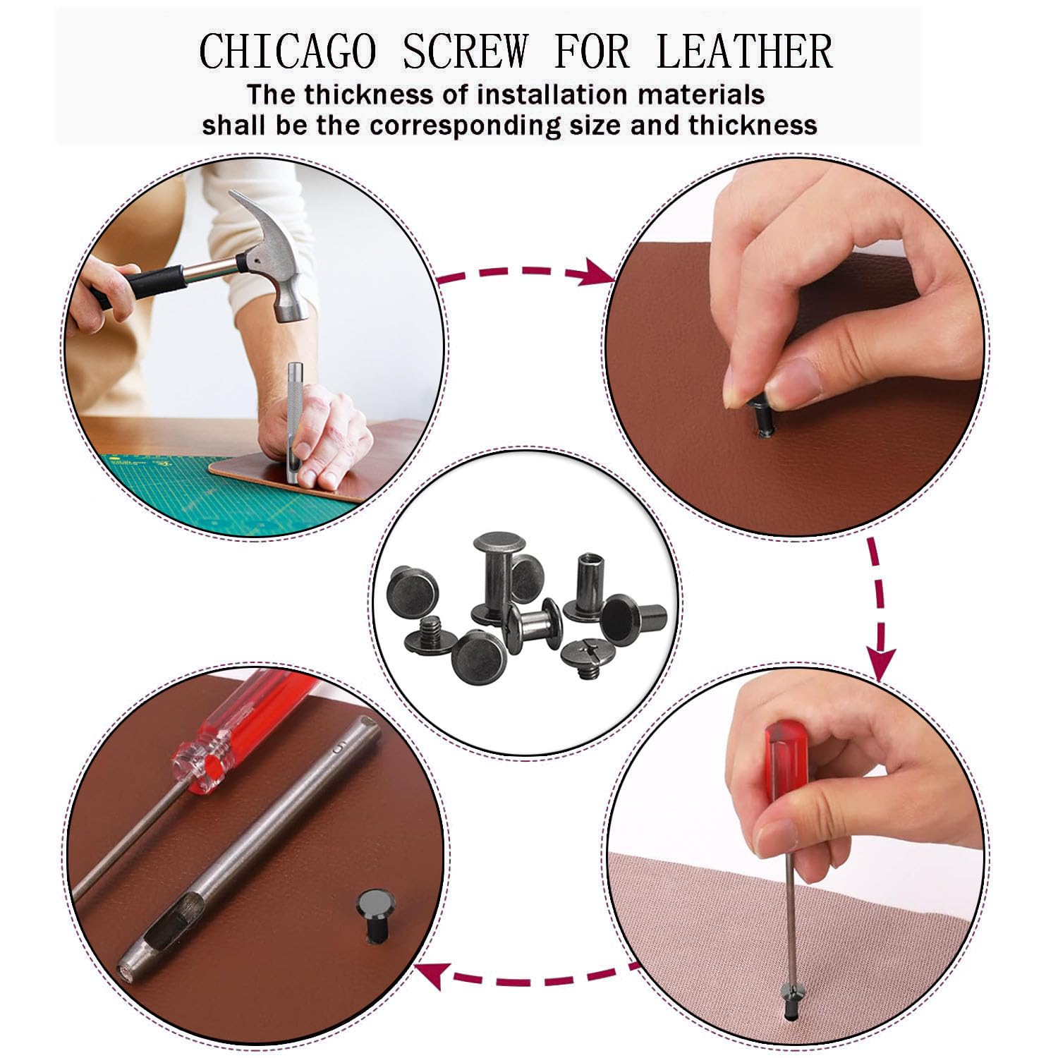 【Applications】: These Black Chicago Screws Leather are widely used by professionals and DIY enthusiasts to create beautiful leather craft and bookbinding projects, such as portfolios, journals, photo albums, scrapbooks, and more.