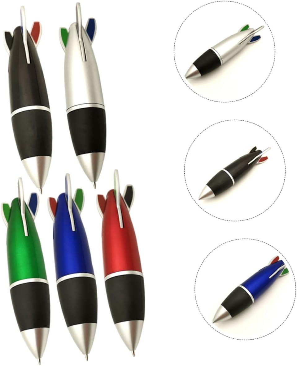 (1 each red + blue + green + silver) 5pcs Rocket Stationery Ballpoint Pen