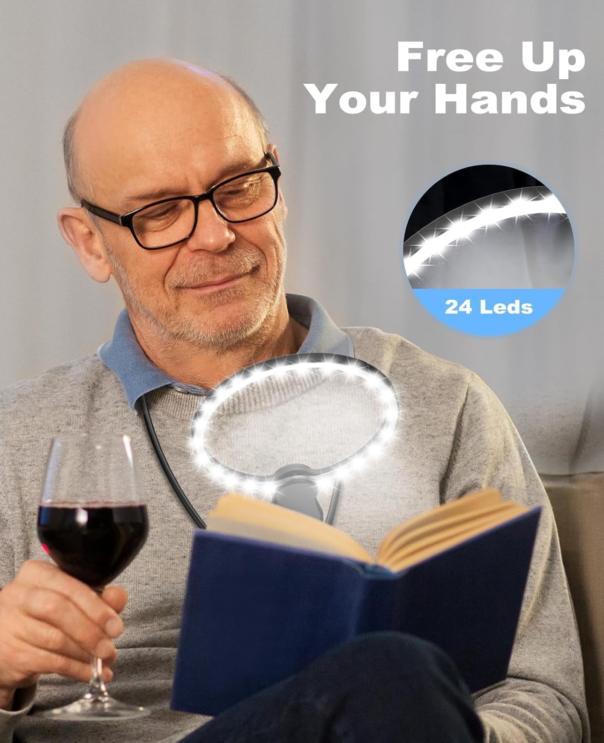 24 Ultra-Bright LEDs Magnifier: The hands-free magnifying glass has 24 built-in LEDs with adjustable brightness; it provides bright and even illumination, effectively reducing eye fatigue, and allowing you to read comfortably in soft light conditions