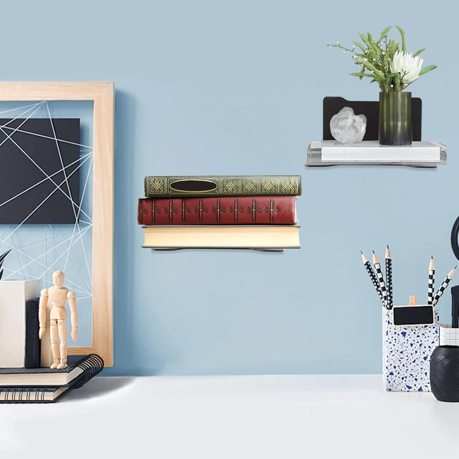 INVISIBLE DESIGN: Another way to store and display your favorite books. Stack your books on the sturdy metal floating bookshelves and the shelves will be hidden behind the books, it looks like the books are floating on your wall, making your wall look stylish and minimalist at the same time